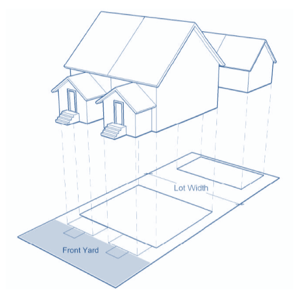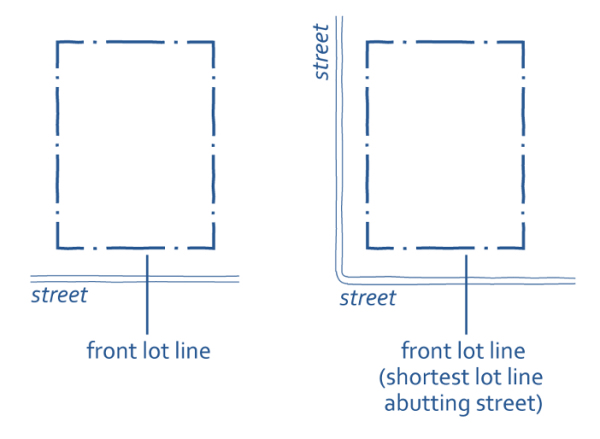 See Chapter 19 for an explanation of various lot and building regulation terms, such as “lot area,” “building height,” “setbacks” and “build-to-zone.”