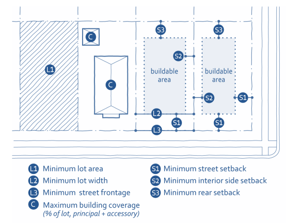 | L1 | Minimum Lot Area (square feet) | 3,750 | 3,750 | 3,750 | 3,750 [1] |