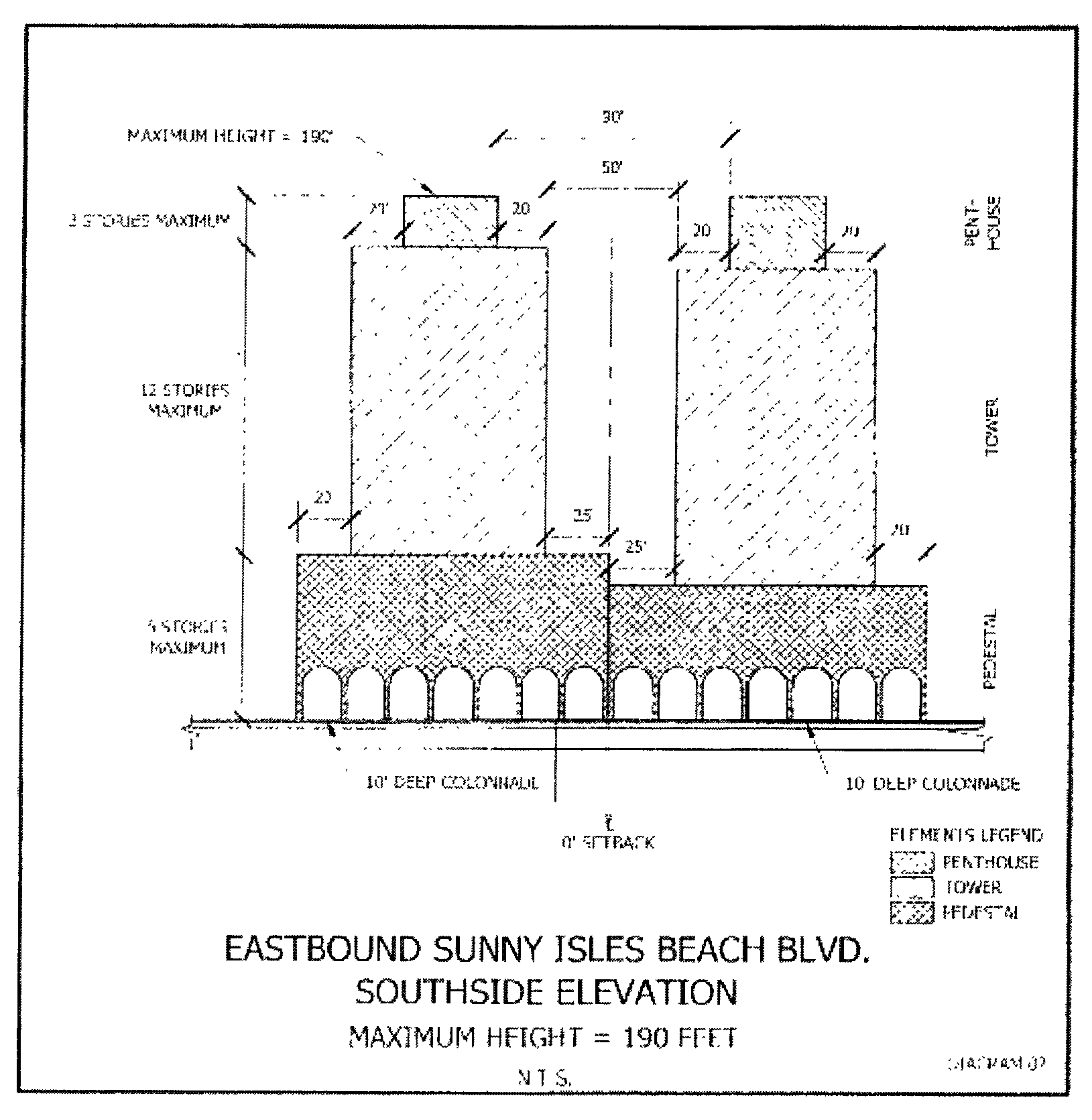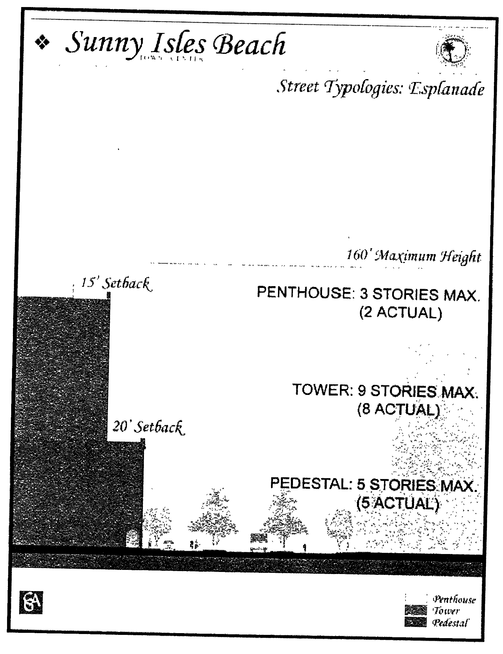 Summary Chart E. The chart below summarizes the parameters lot width in the Sunny Isles Boulevard, South Edge and Sunny Isles Center Subdistrict.