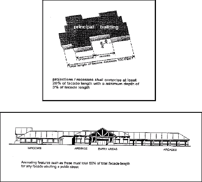 Building façades. Exterior elevations shall be designed such that all building facades:
