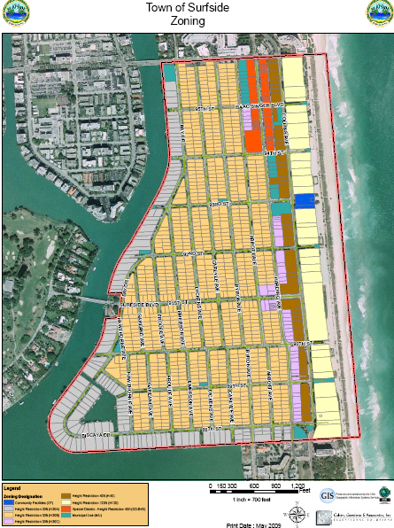 The zoning classification thereof shall be shown on a map designated as the Zoning Map of Surfside. This zoning map and all notations, dimensions, references, and symbols shown thereon pertaining to such districts shall be as much a part of these regulations as if fully described herein, and shall be filed as part of these regulations by the clerk of the town. Such map shall be available for public inspection in the offices of the town clerk and the town manager and any later alterations to this map, adopted by amendment as provided in these regulations, shall be similarly dated, filed, and made available for public reference.