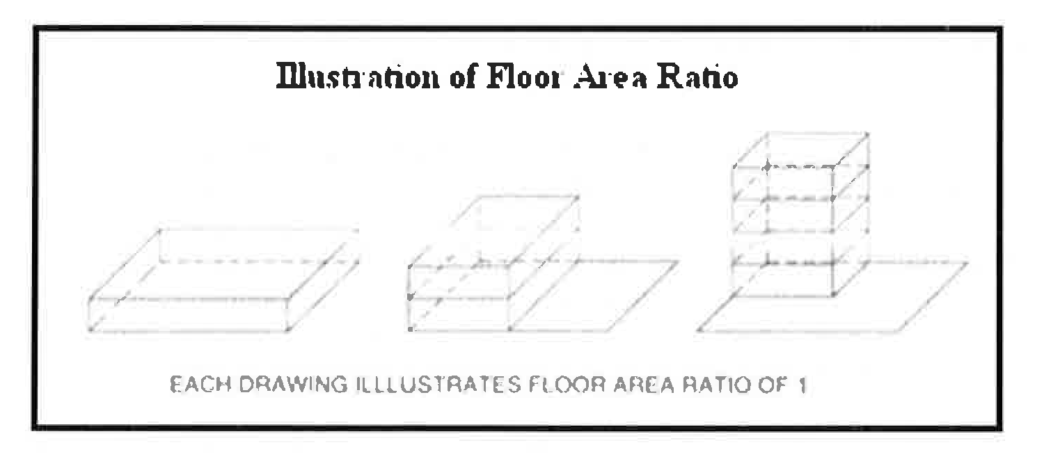 Floor area ratio (FAR) shall mean the total heated living space (heated floor area) of a building(s) on a lot divided by the total area of contiguous land of such lot (see illustration). (Example: A building with three thousand two hundred (3,200) square feet of heated floor area located on a lot that is eight thousand (8,000) square feet in area would have a floor area ratio of .4)