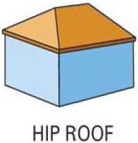 Hipped roof means a type of roof where all sides slope downwards to the walls, usually with a fairly gentle slope.
