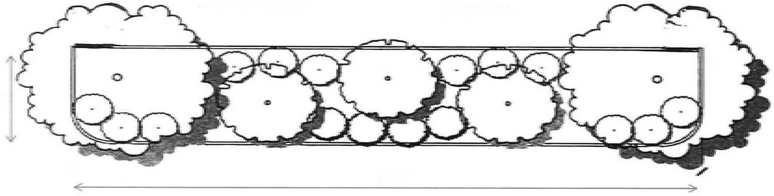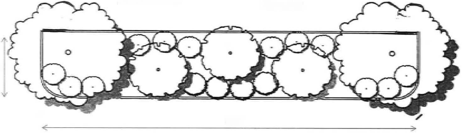 Landscaping buffer requirements for perimeter parking areas: Arrangement of trees and shrubs in groupings is encouraged to ensure visibility and to allow for creativity. Equal spacing of plant materials shall not be required.