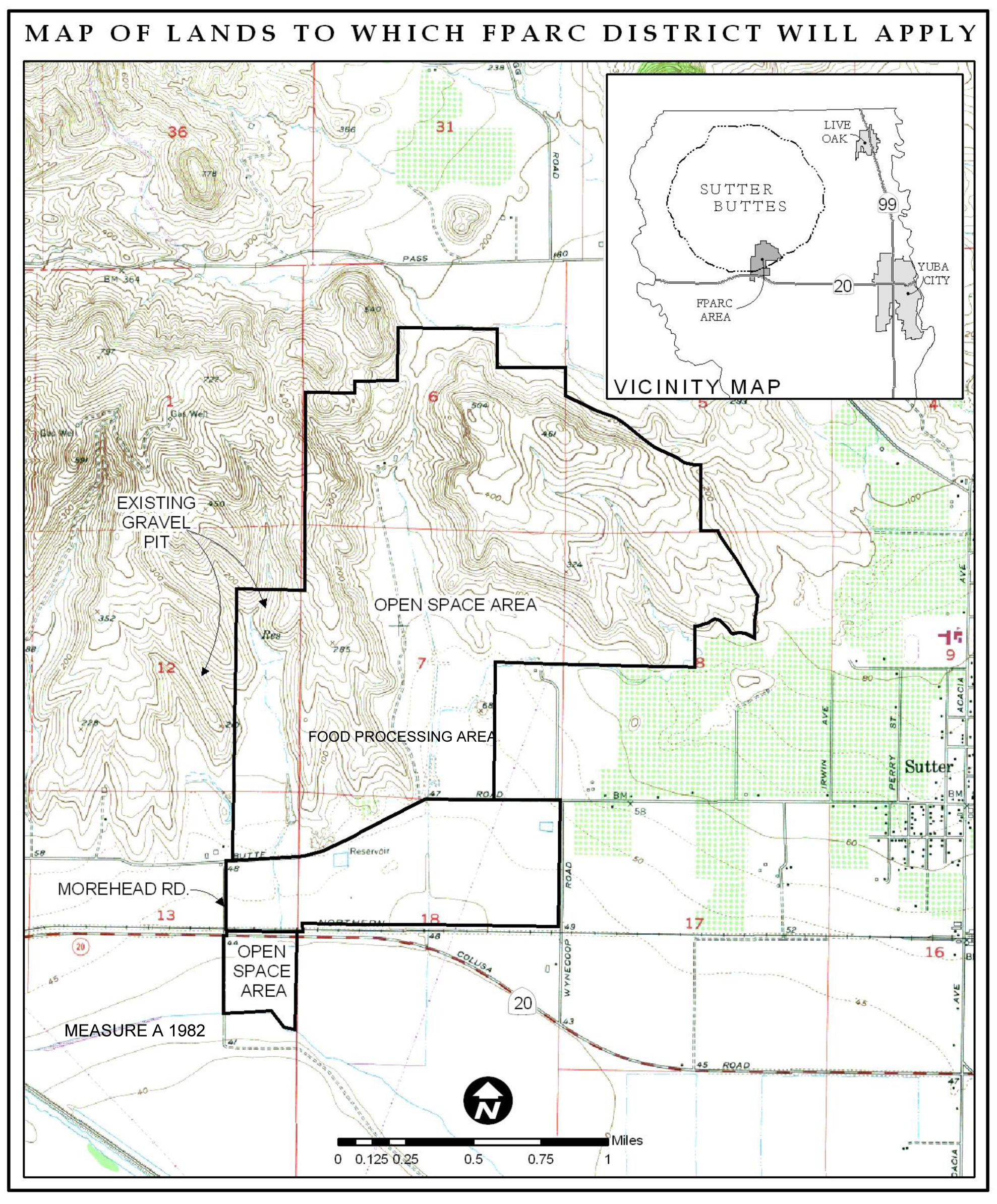 The FPARC District is established to implement the goals and policies of the General Plan Amendment adopted concurrently herewith and is to be applied to those lands within the County of Sutter as described on the map below.