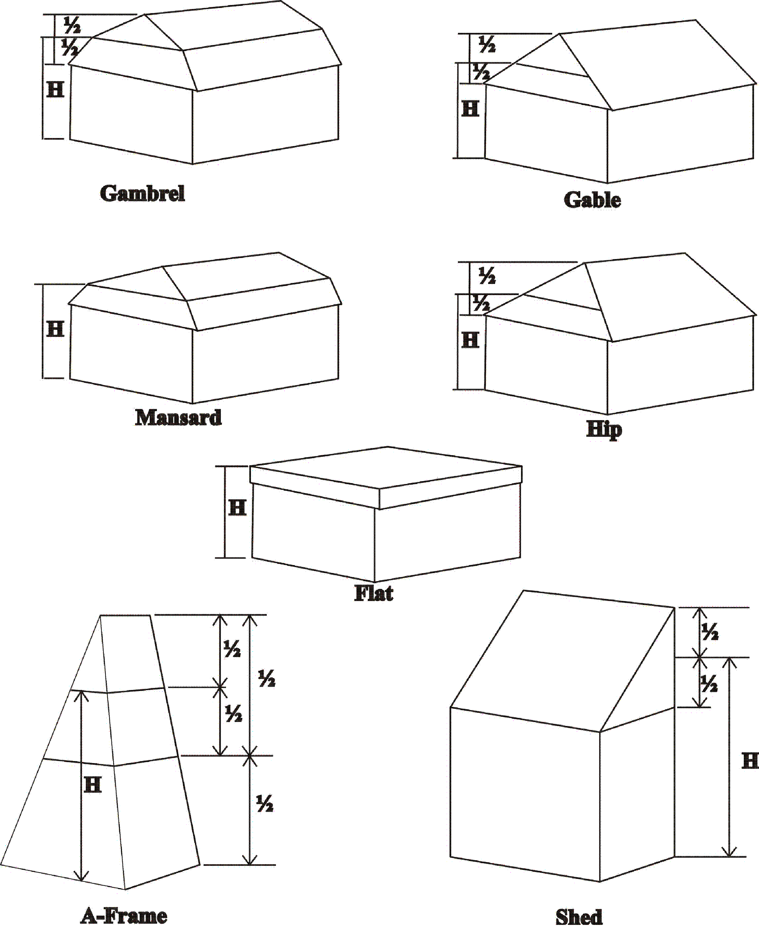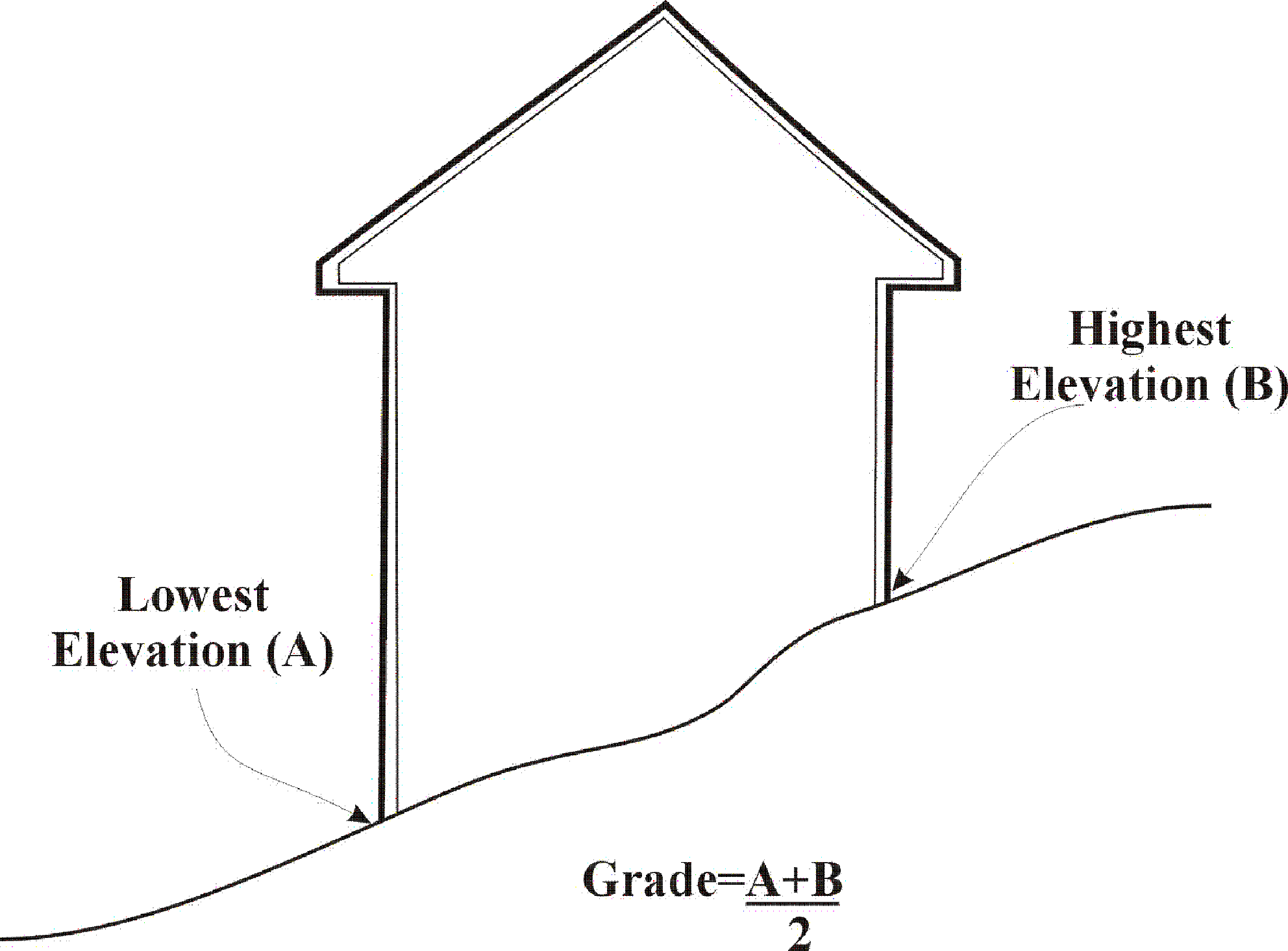 Building height: The vertical distance measured from the established grade to the highest point of the roof surface for flat roof; to the deck line of mansard roofs; and to the average height between eaves and ridge for gable, hip, and gambrel roofs. Where a building is located on sloping terrain, the height may be measured from the average ground level of the grade at the building wall.