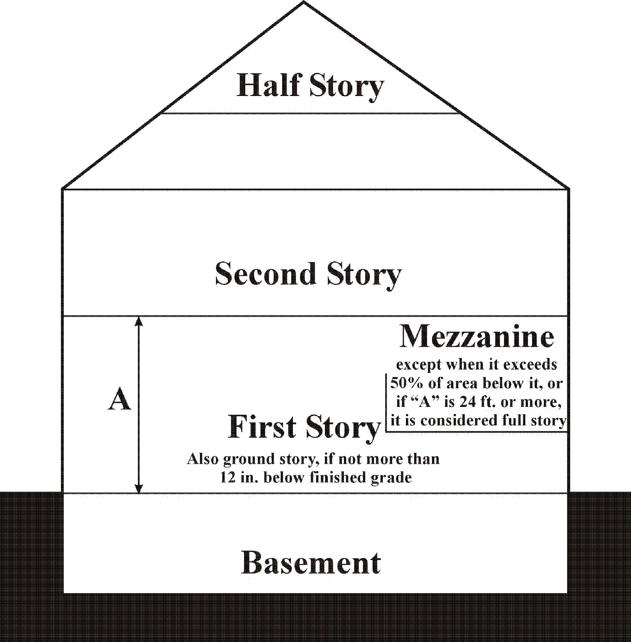 Story: That part of a building, except a mezzanine as defined herein, included between the surface of one floor and the surface of the next floor, or if there is no floor above, then the ceiling next as above. A story thus defined shall not be counted as a story when more than 50 percent, by cubic content, is below the height level of the adjoining ground.