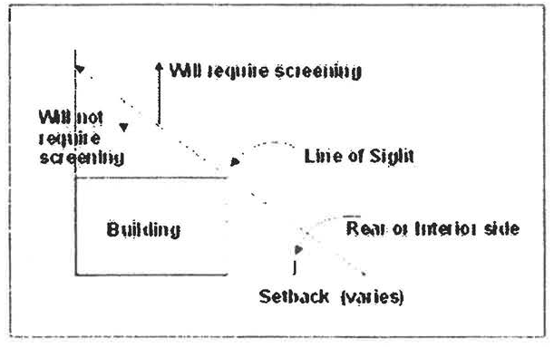 An initial antenna installation within 13 feet of the corner of a structure shall require screening along the rooflines of both sides of the corner to a distance of 13 feet.