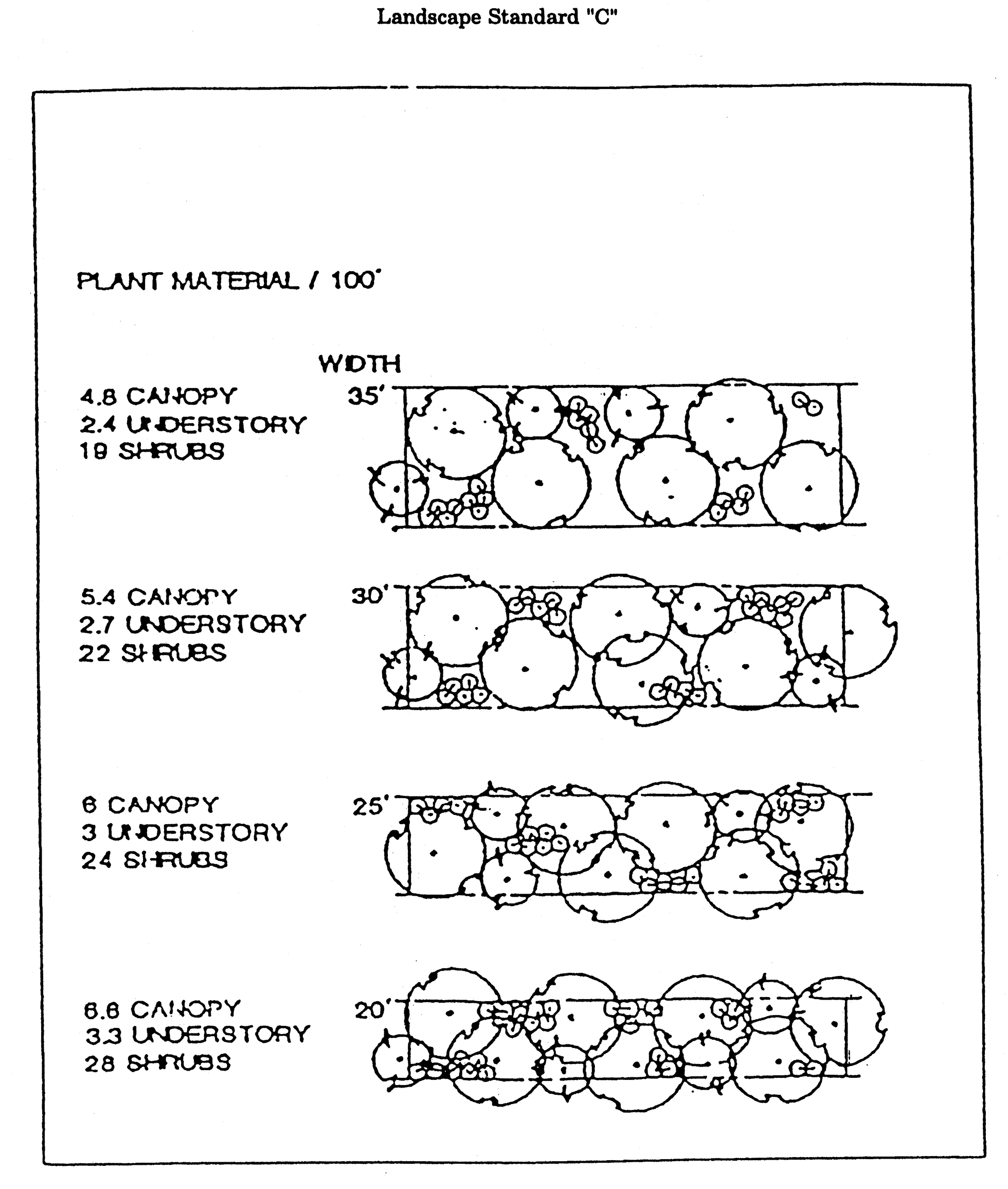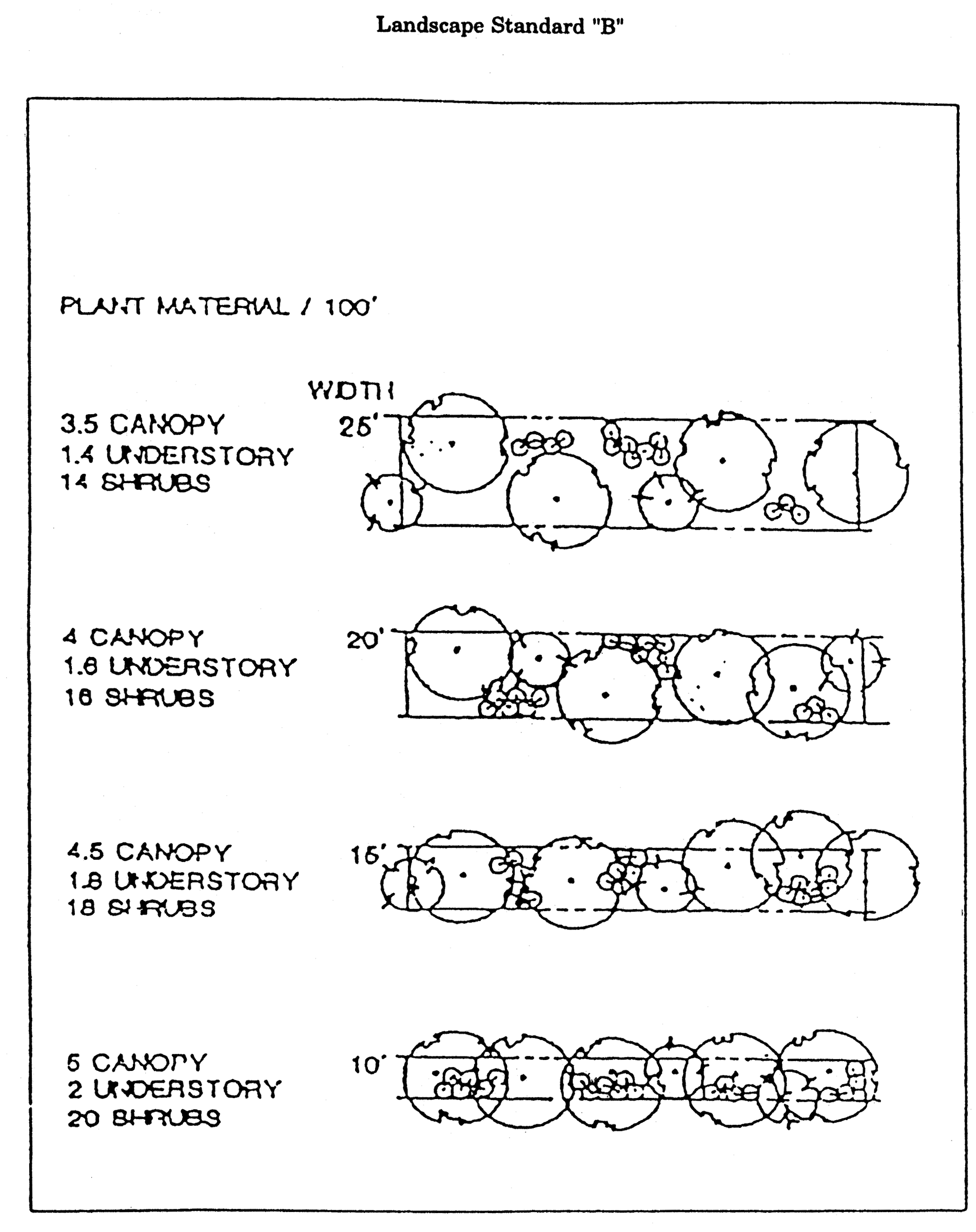 A series of schedules of land use development criteria relating use types to various factors. These include: Schedule B, Maximum Allowable Floor Area Standards and Schedule C, Minimum Development Standards.