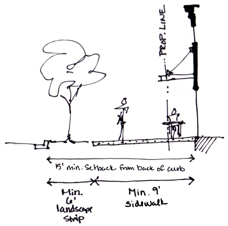 1. Tree wells or planters should be provided in mixed-use/commercial areas with on-street parking.