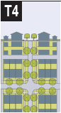 TABLE 7: Building Disposition. This table approximates the location of the structure relative to the boundaries of each individual lot, establishing suitable basic building types for each transect zone.