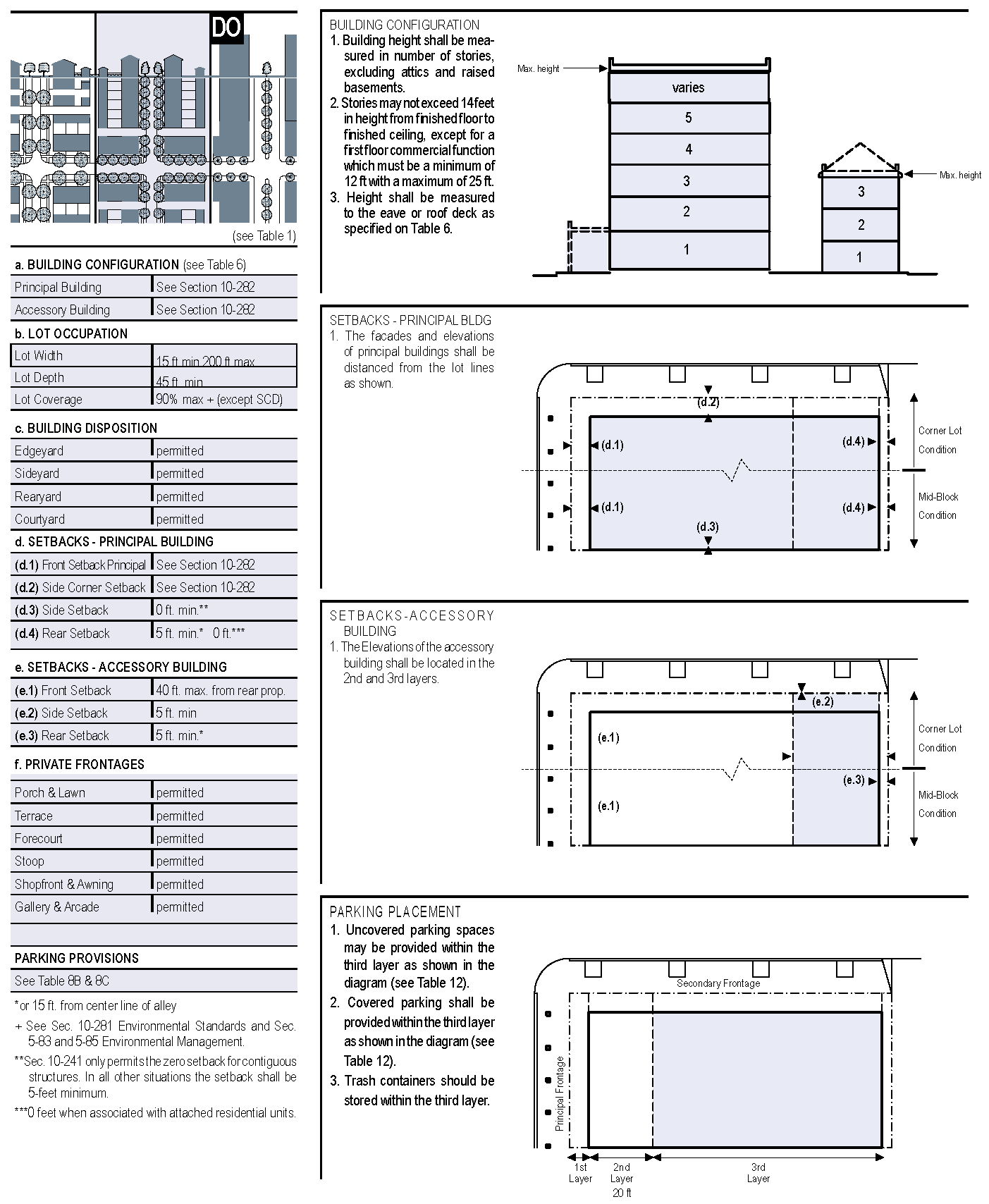 The standards and tables of Section 10-285 are an integral part of this code and are requirements. However, the diagrams and illustrations that accompany them should be considered guidelines. Should there be discrepancies between the general text and tables, the tables shall be used for detail on applicable standards.