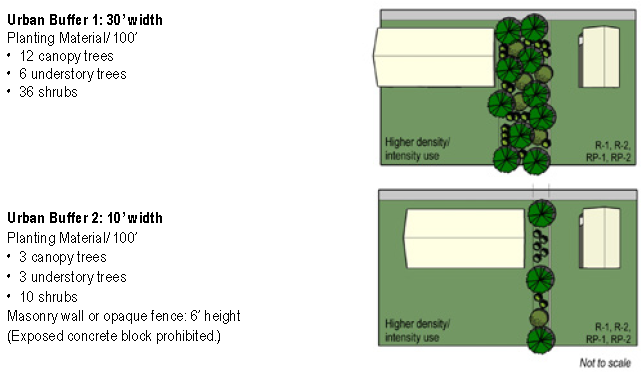 A description and buffer zone standards (section 10-177) based on adjacencies and intensities.