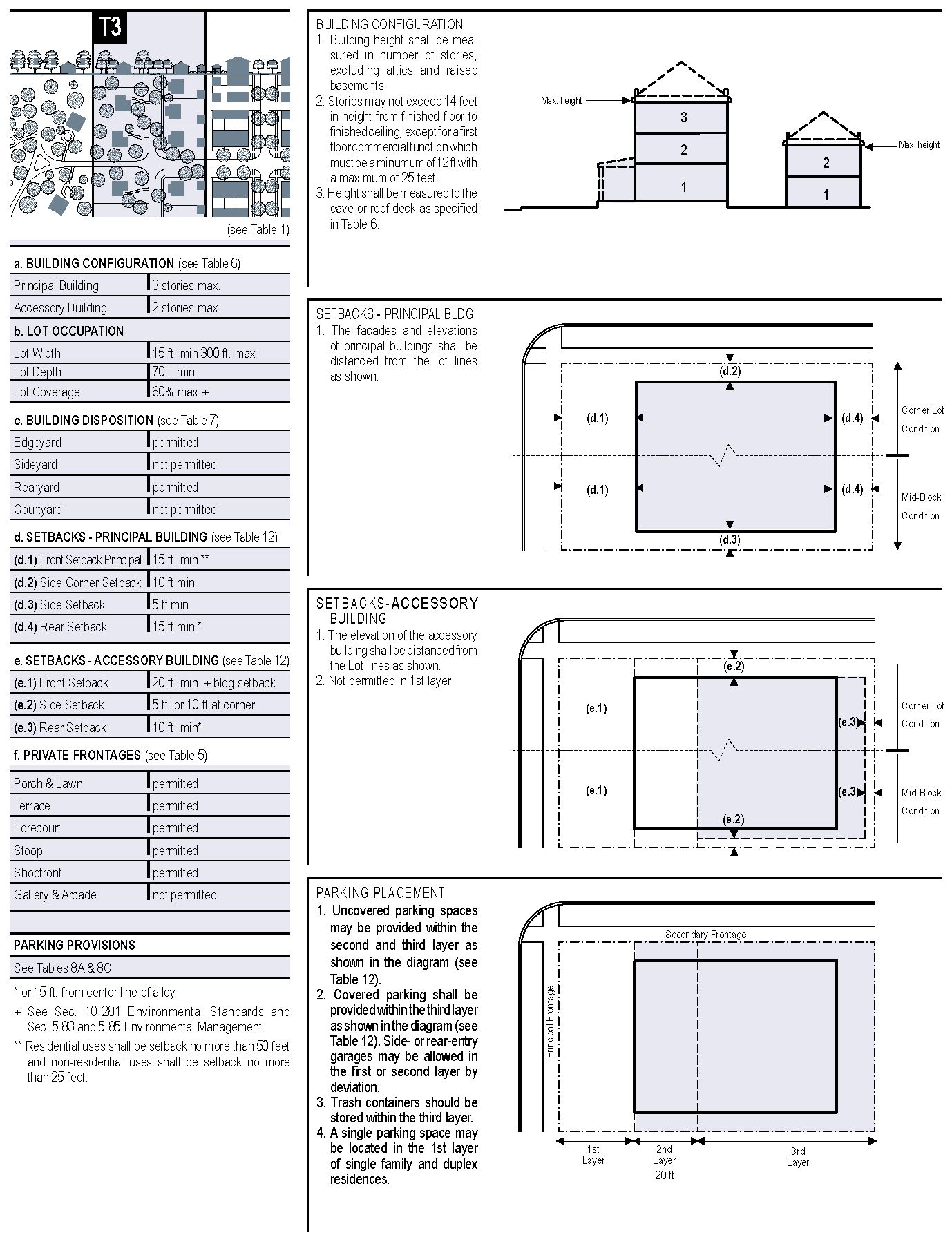 TABLE 10A: Development standards for Transect 3 (RP-1, RP-2, R-1, R-2, R-3, R-5, NBO, OR-1, C-1, CU-12, NB-1)