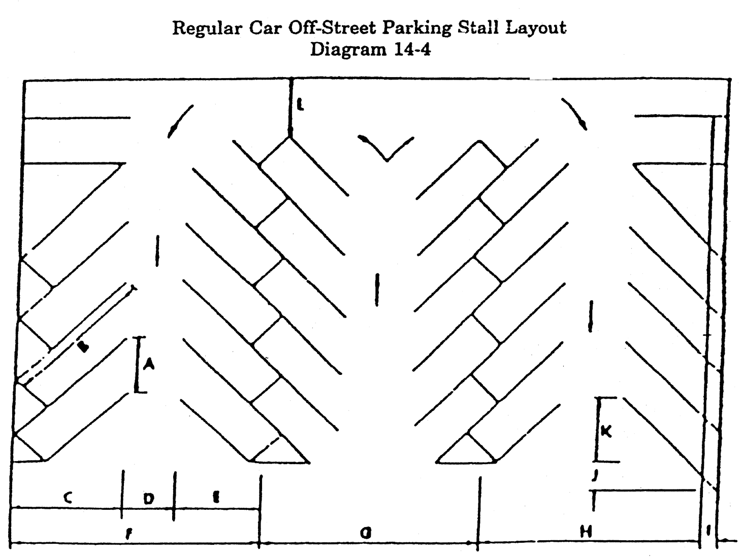 Regular car parking. The minimum dimensions for required off-street spaces shall be as depicted in the schedule for regular car parking and the diagram of regular car off-street parking stall layout in this section, except that redevelopment projects are exempt from complying with these requiremetns provided the city traffic engineer determines the proposed dimensions meet minimum safety standards based on accepted traffic engineering principles for the subject site: