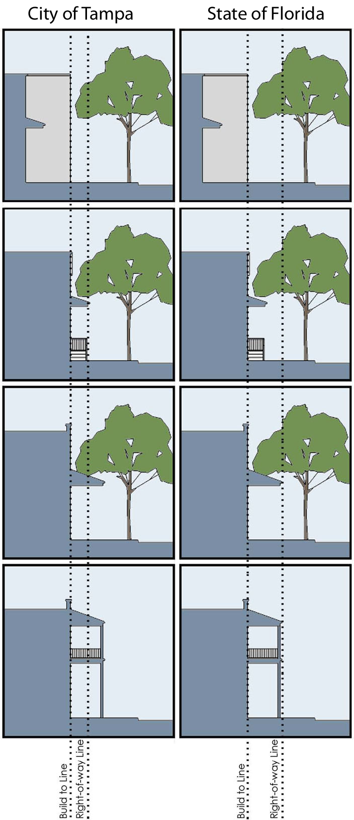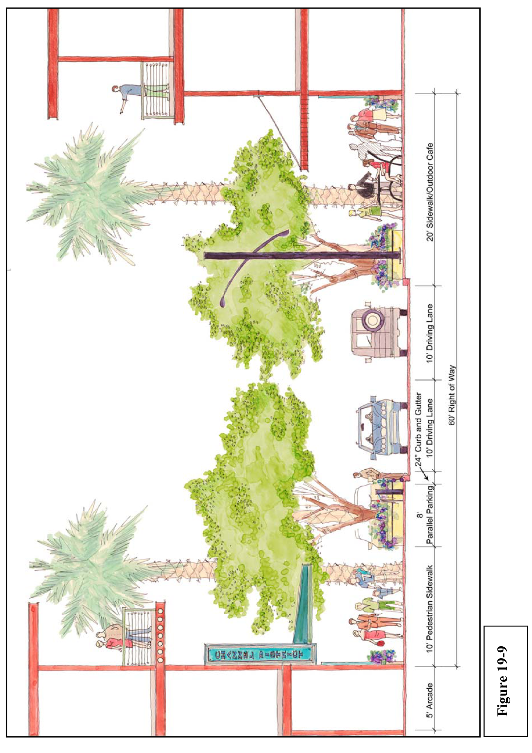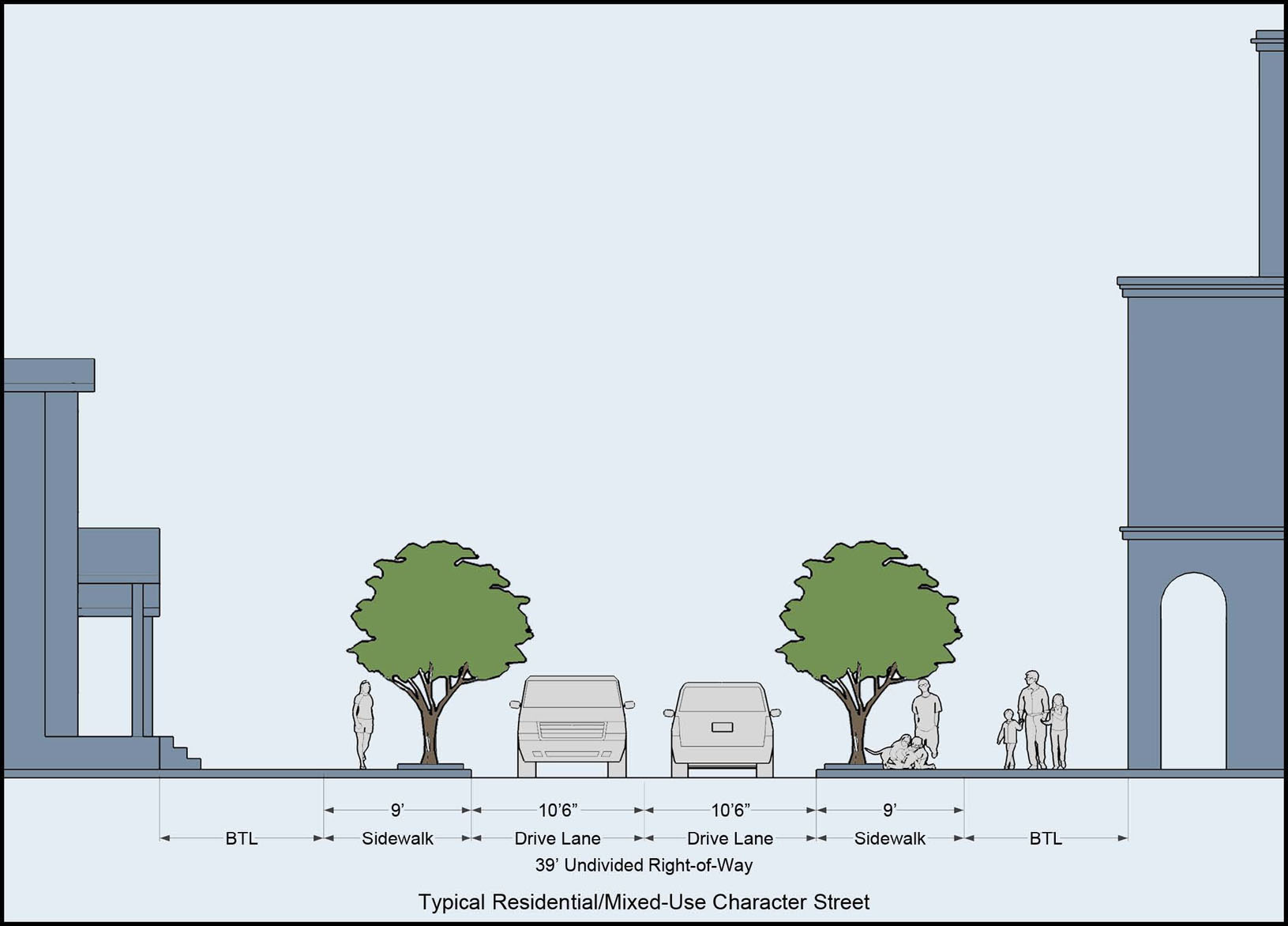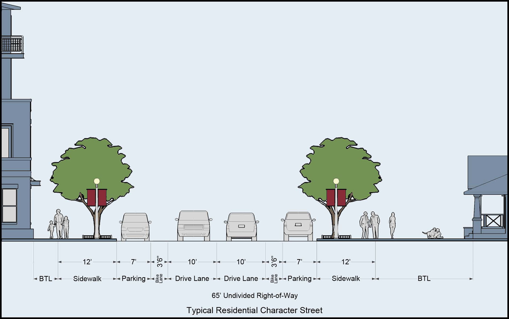 Typical street sections. The Greater Seminole Heights area contains a defined and open street grid of varying right-of-way widths with both local and state roads. The following are typical street cross sections that shall apply to new streets and to any future improvements (either public or private as noted in (a) above):