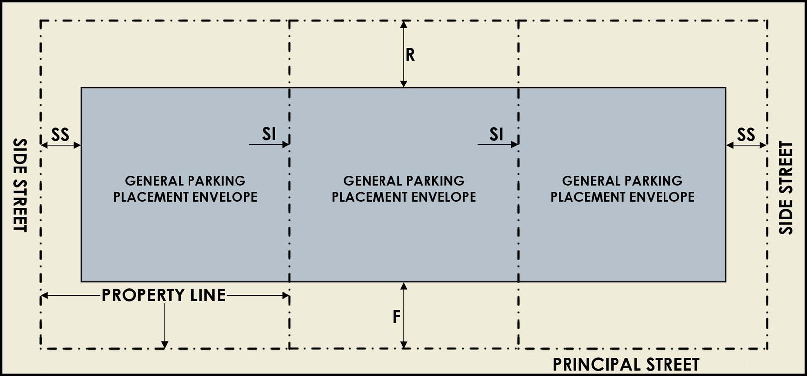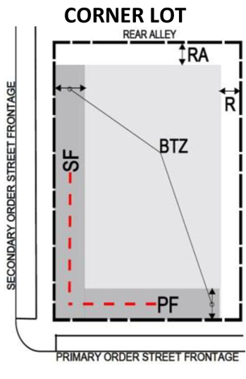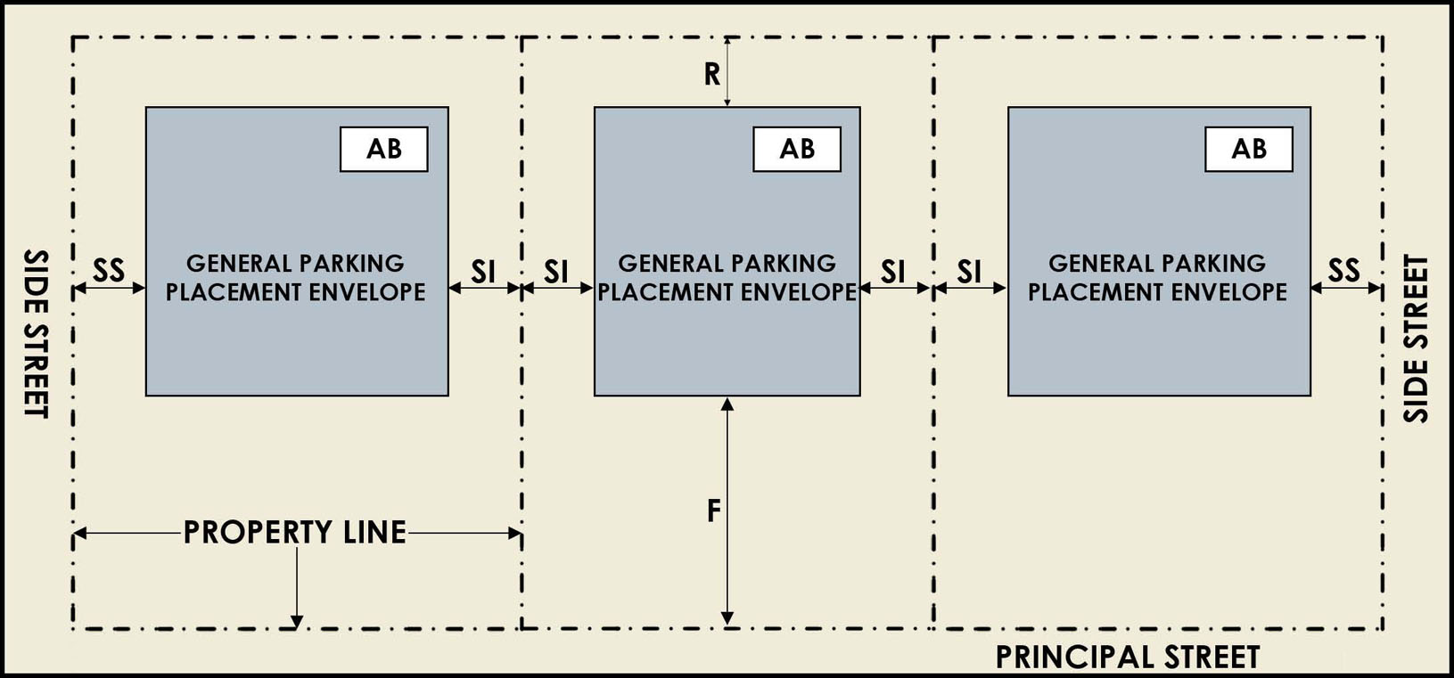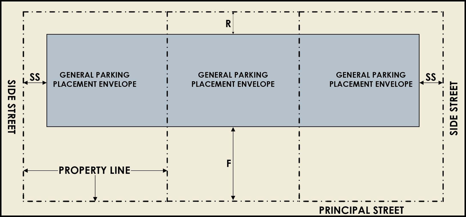 Access. Access to non-residential parking areas may be located on local streets within and placed no further than 100' of the intersection with an arterial or collector roadway.