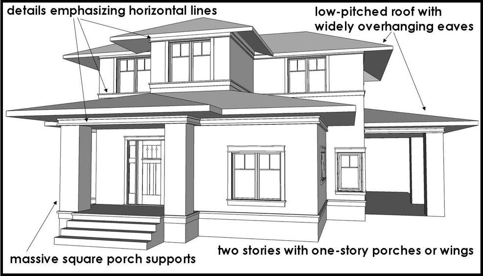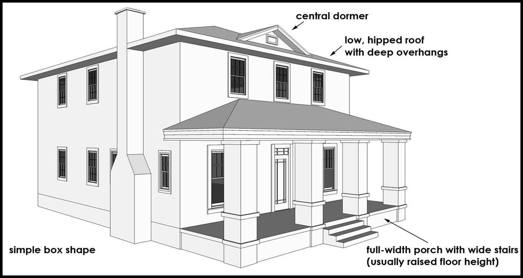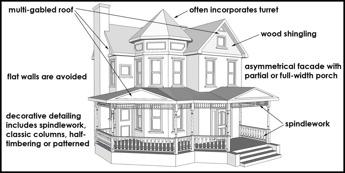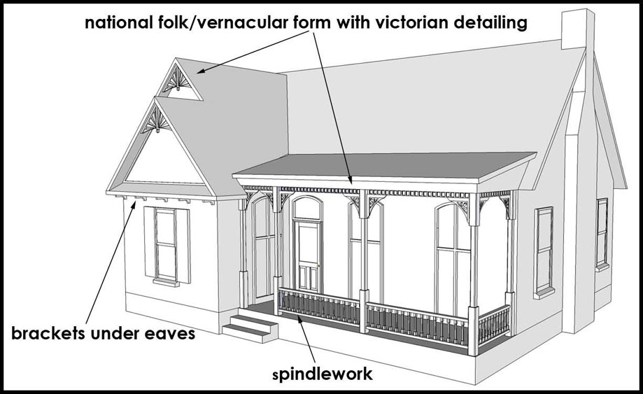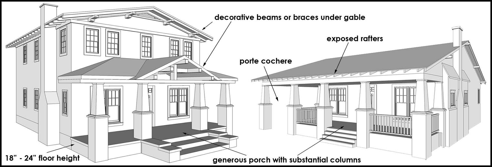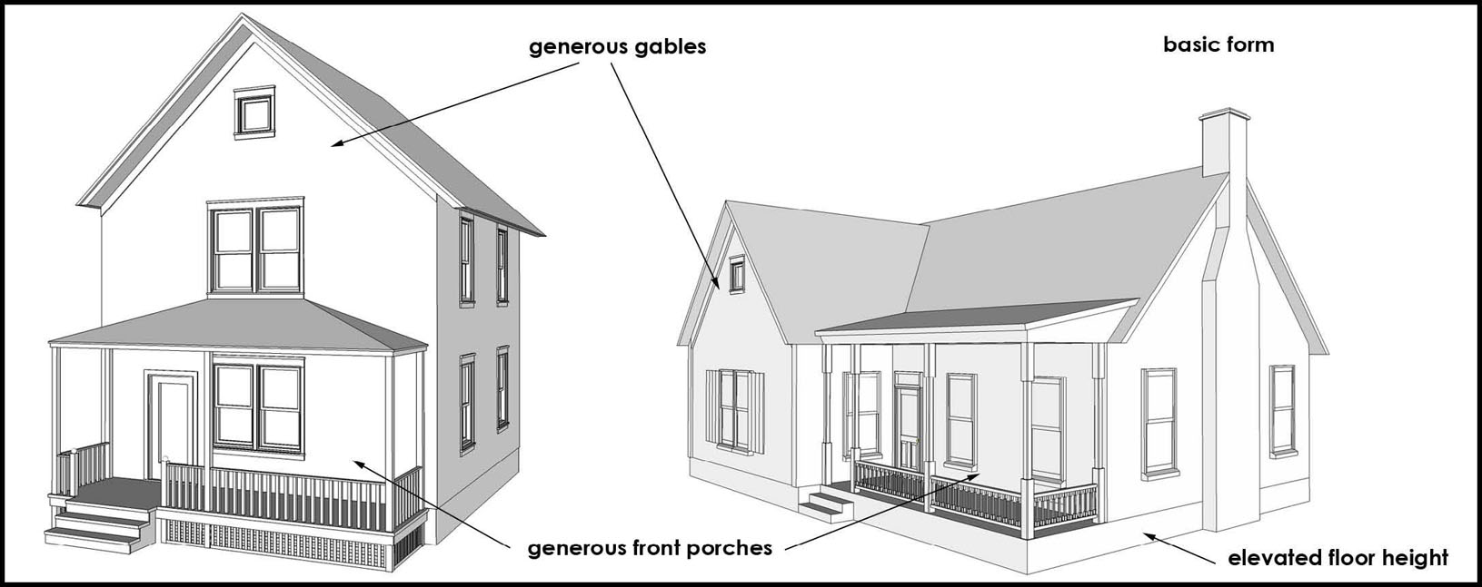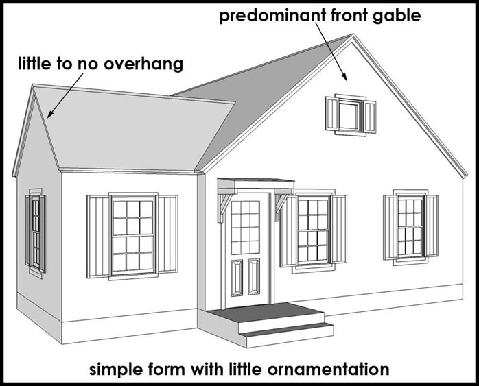 most of the traditional detailing. Generally has a dominant front gable.