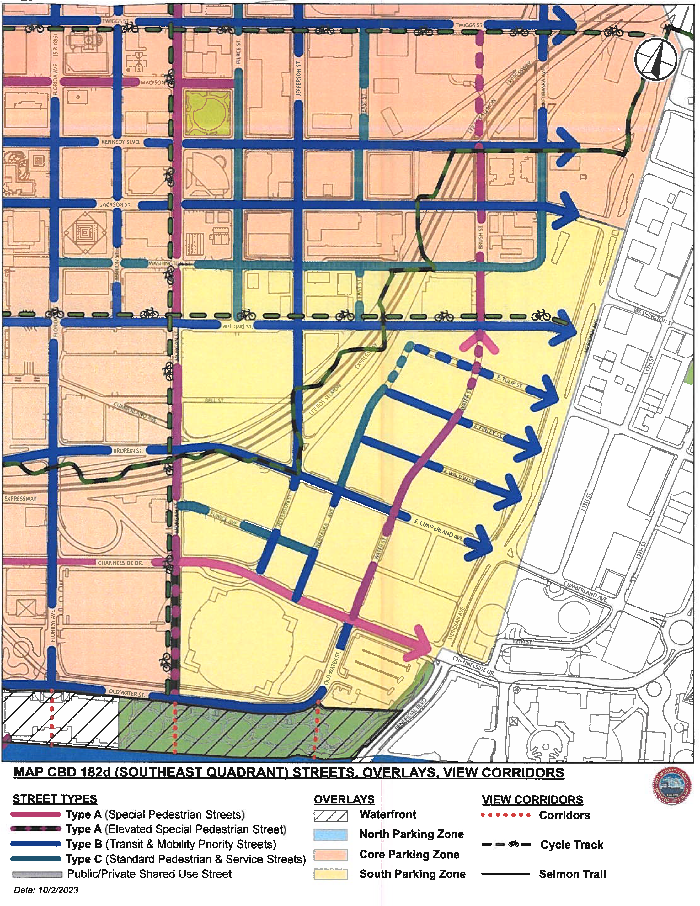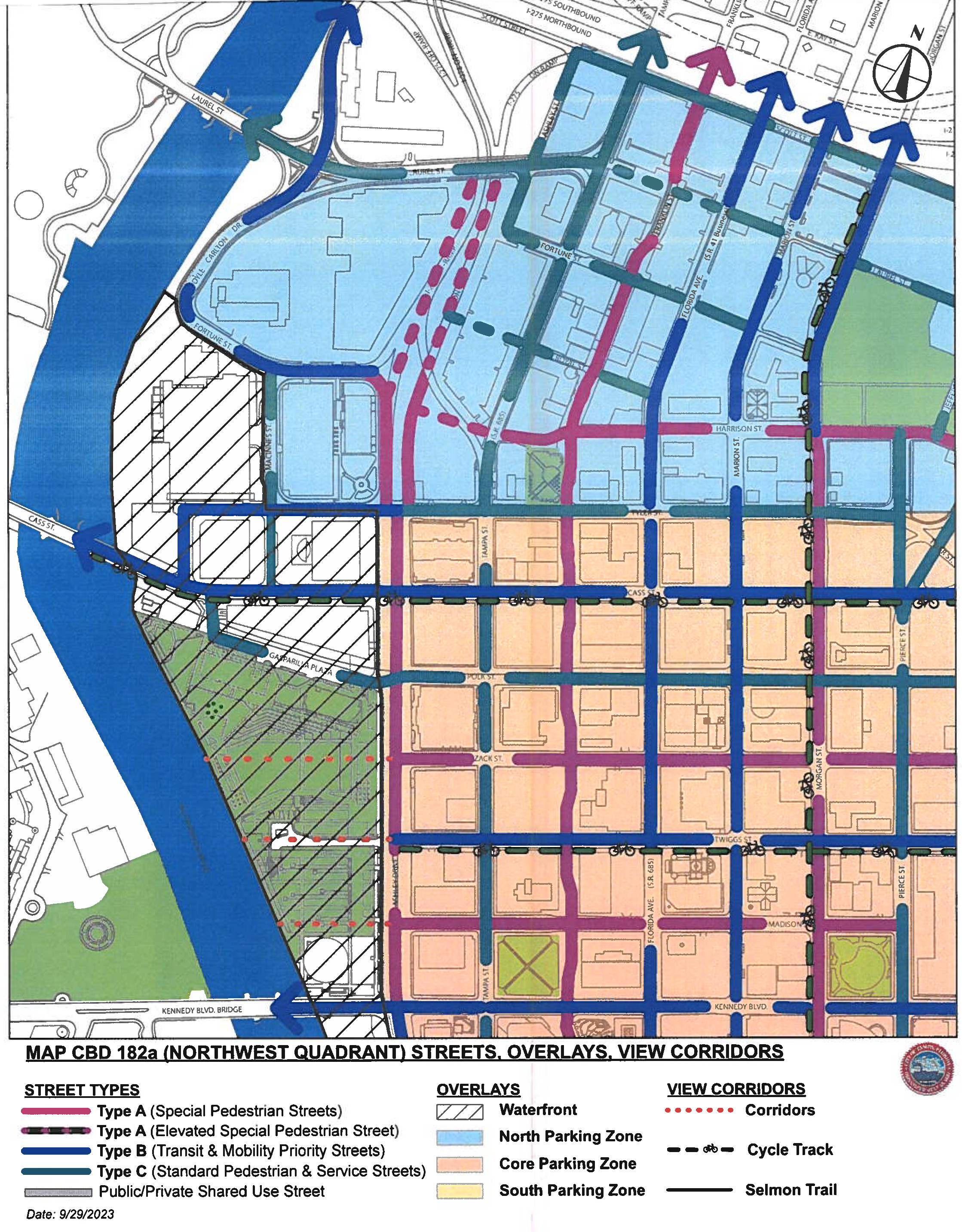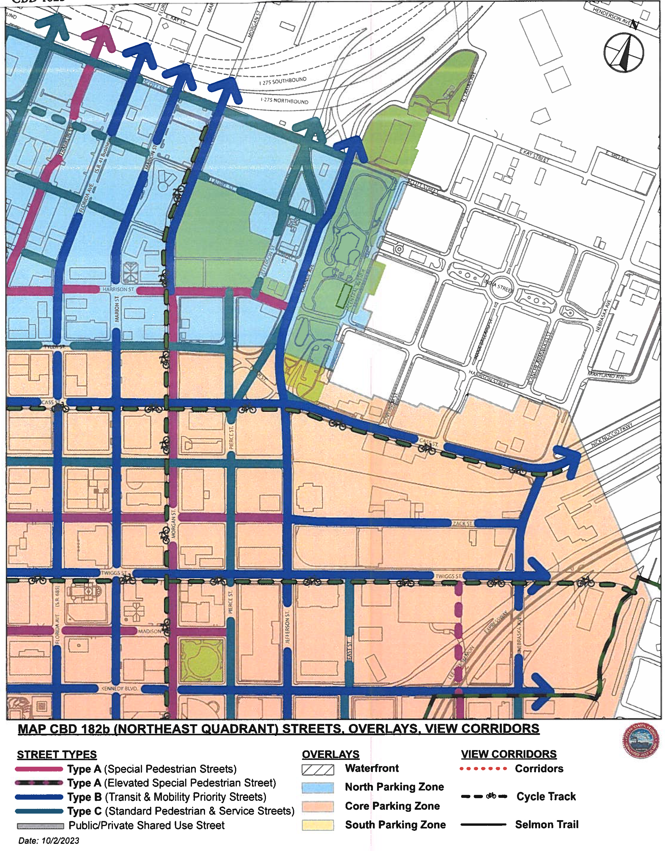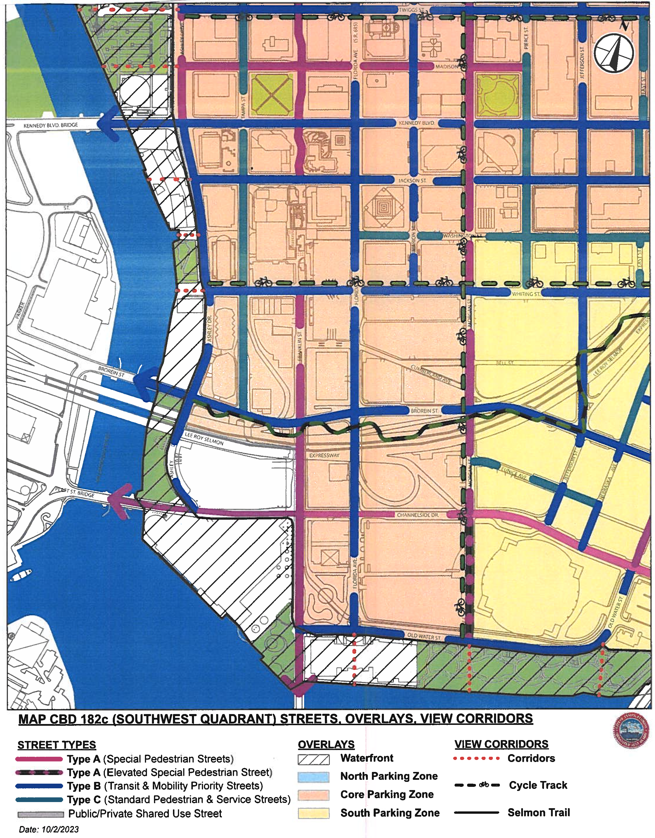 Central Business District (CBD). The purpose of the CBD district is to implement the goals of the Center City Plan, a component of the Center City Plan, a component of the Tampa Comprehensive Plan, and to guide development through design regulations to create a public realm of high-quality through the regulation of the physical form of buildings, streets, and open spaces, the form and mass of buildings in relation to one another, and the establishment of a pedestrian-friendly relationship between building facades and the public realm. Refer to section 27-181.1 for provisions related to CBD-1 and CBD-2 zoning subdistricts.
