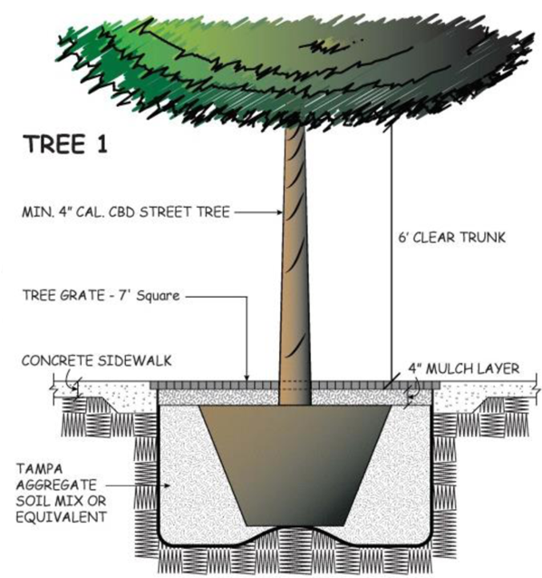 Streetscape. Landscape materials (tree plantings) are subject to Transportation Division approval and shall adhere to the list provided in section 27-211.13.