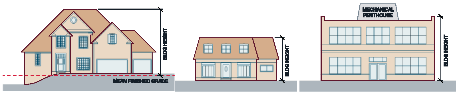 4.5.1 CALCULATION OF BUILDING HEIGHT: The height of a building shall be the vertical distance from the mean elevation of the finished grade at the front of the building to the highest point of the building.
