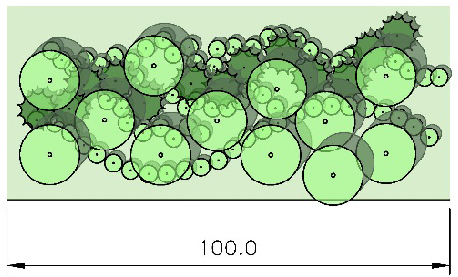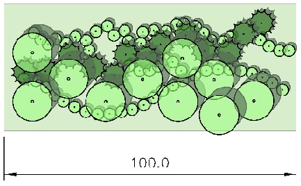 Broken Screen, Type C: The intent of the Type C Buffer is to create a semi-opaque buffer, having only seasonal horizontal openings, not to exceed 25% of the total width, from the ground to a height of 6 feet within 2 years of planting. A Type C Buffer can be achieved in four ways as specified below: