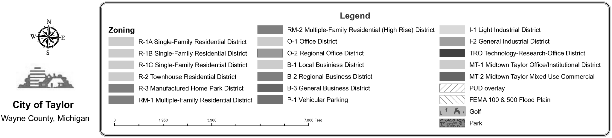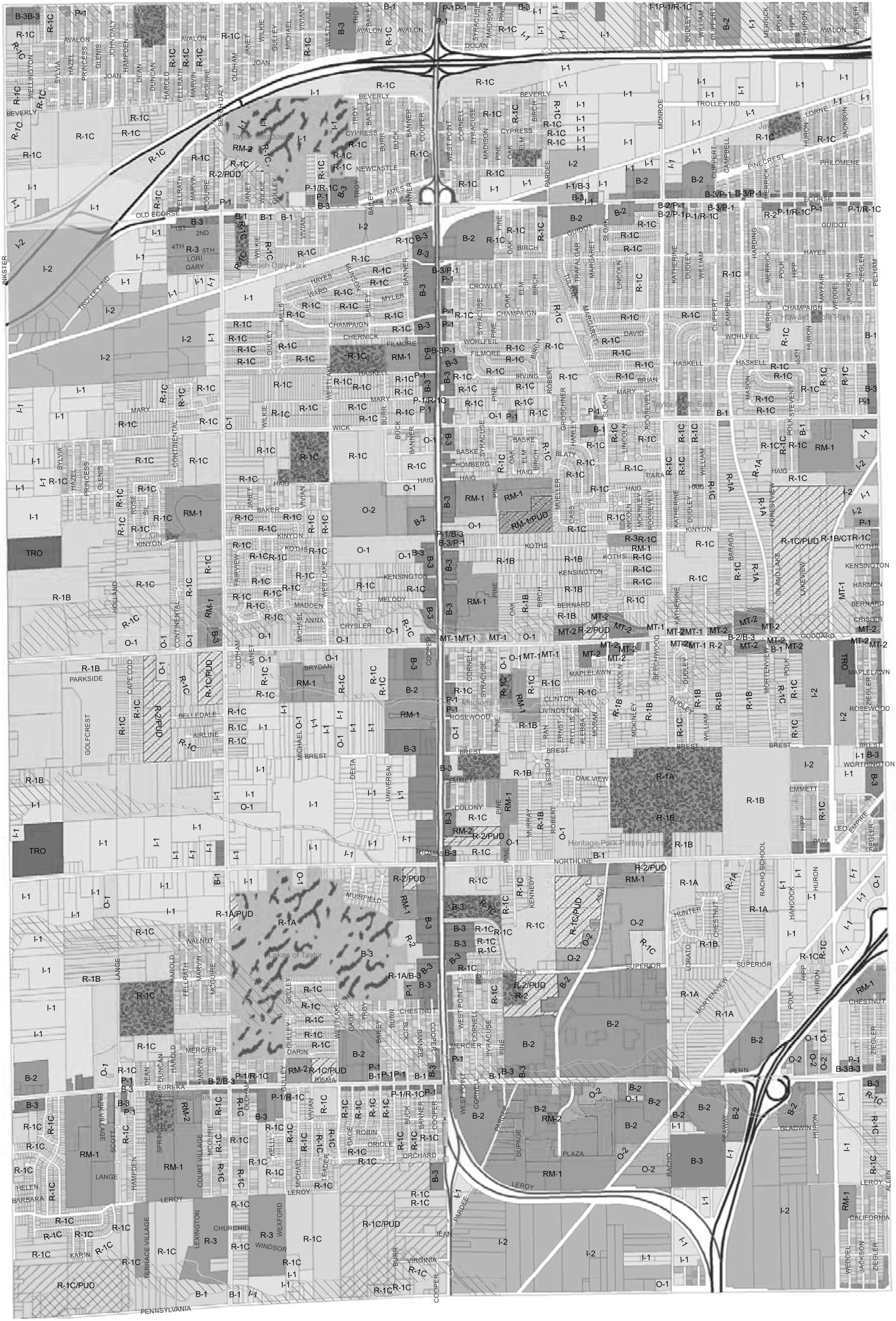 | Use | R-1A | R-1B | R-1C | R-2 | RM-1 | RM-2 | R-3 | O-1 | O-2 | B-1 | B-2 | B-3 | MT-1 | MT-2 | TRO | I-1 | I-2 | |