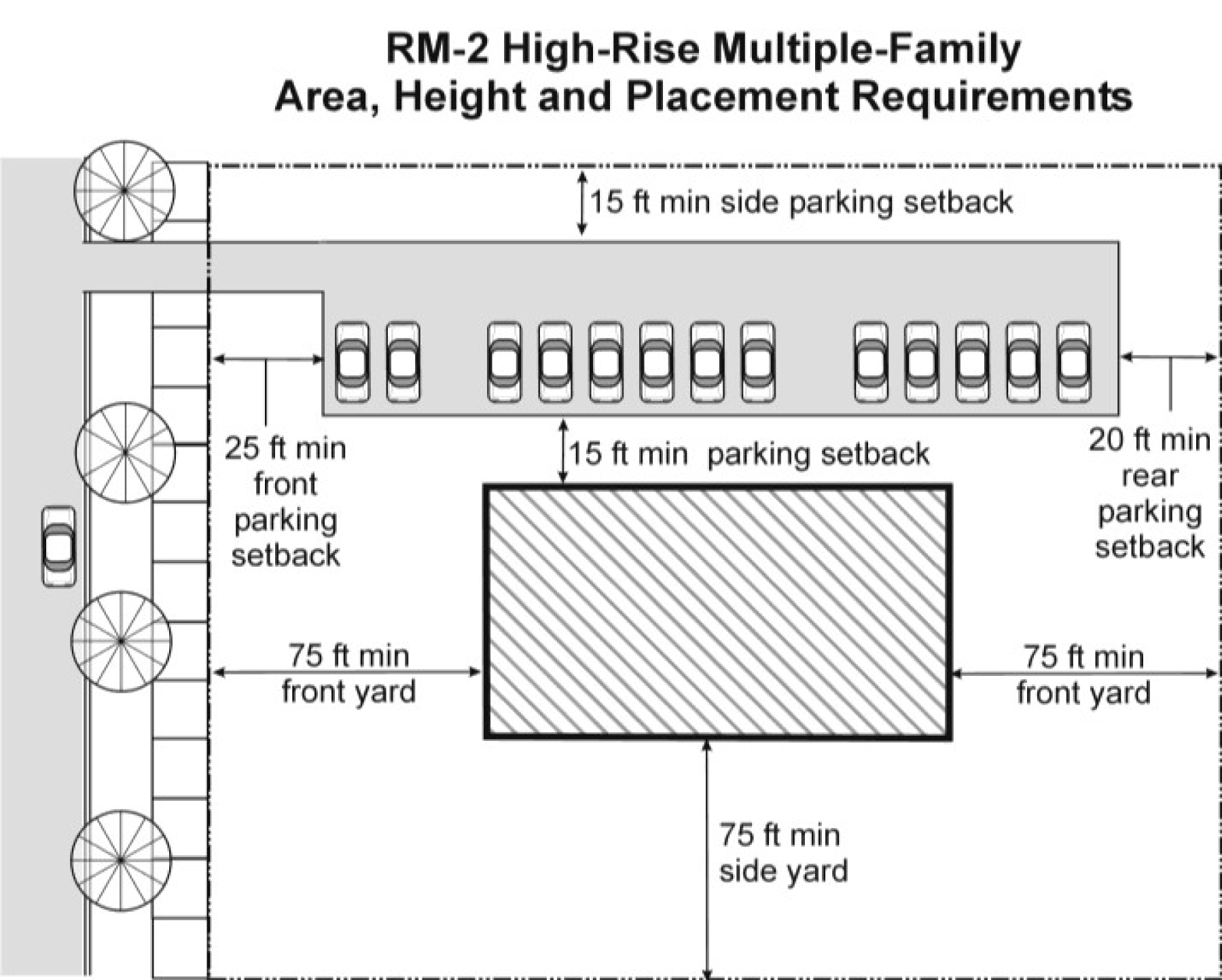 The RM-2 High Rise Multiple-Family Residential District is intended to provide sites for multistory multiple-family dwelling structures primarily for the elderly. These structures shall serve the residential needs of elderly persons desiring multiple-family accommodations with central services.
