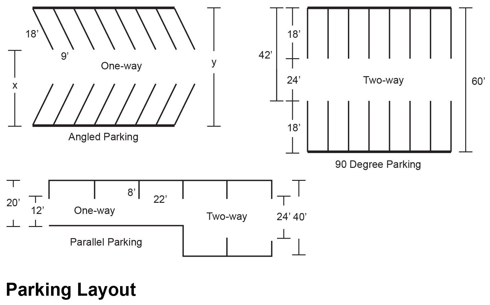 The layout of off-street parking facilities shall be in accordance with the following minimum requirements: