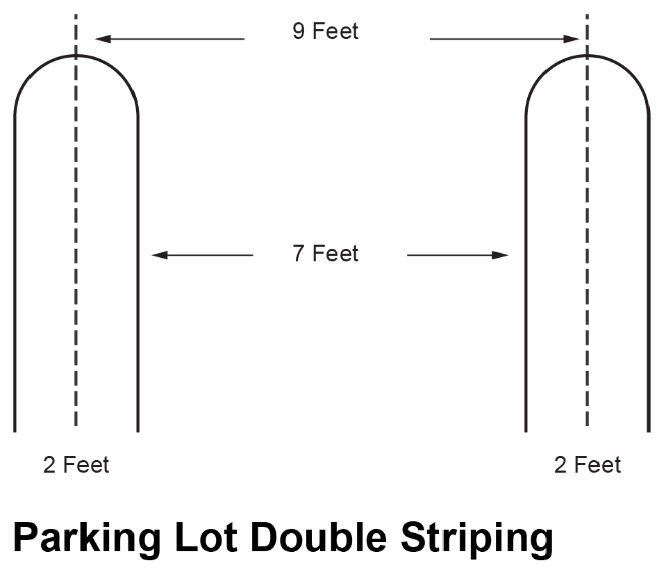 All parking spaces shall be clearly striped with double four-inch wide lines, spaced twenty-four (24) inches apart, to facilitate movement and to help maintain an orderly parking arrangement. Refer to Parking Lot Double Striping Figure.