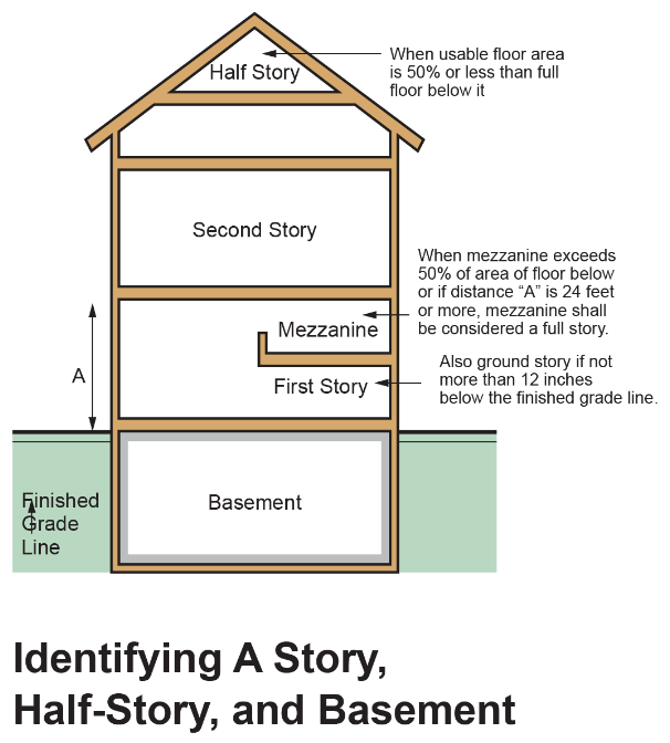 Mezzanine. A full story when it covers more than thirty-three percent (33%) of the area of the story underneath such mezzanine or if the vertical distance from the floor next below it to the floor next above it is twenty-four (24) feet or more.