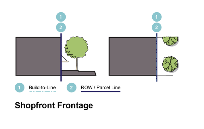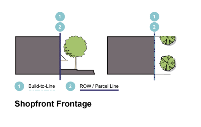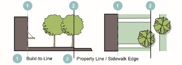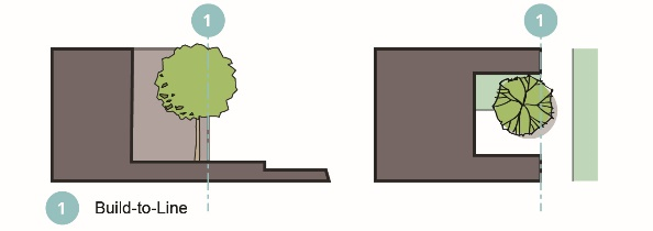 Build-to area: An area at the front of the lot in which a front building facade must be located.