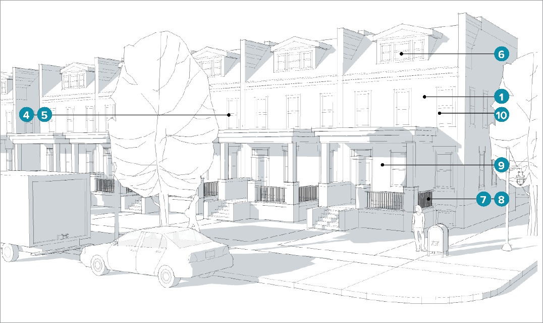 Townhouses/rowhomes in the downtown district are required to conform to the following design guidelines: