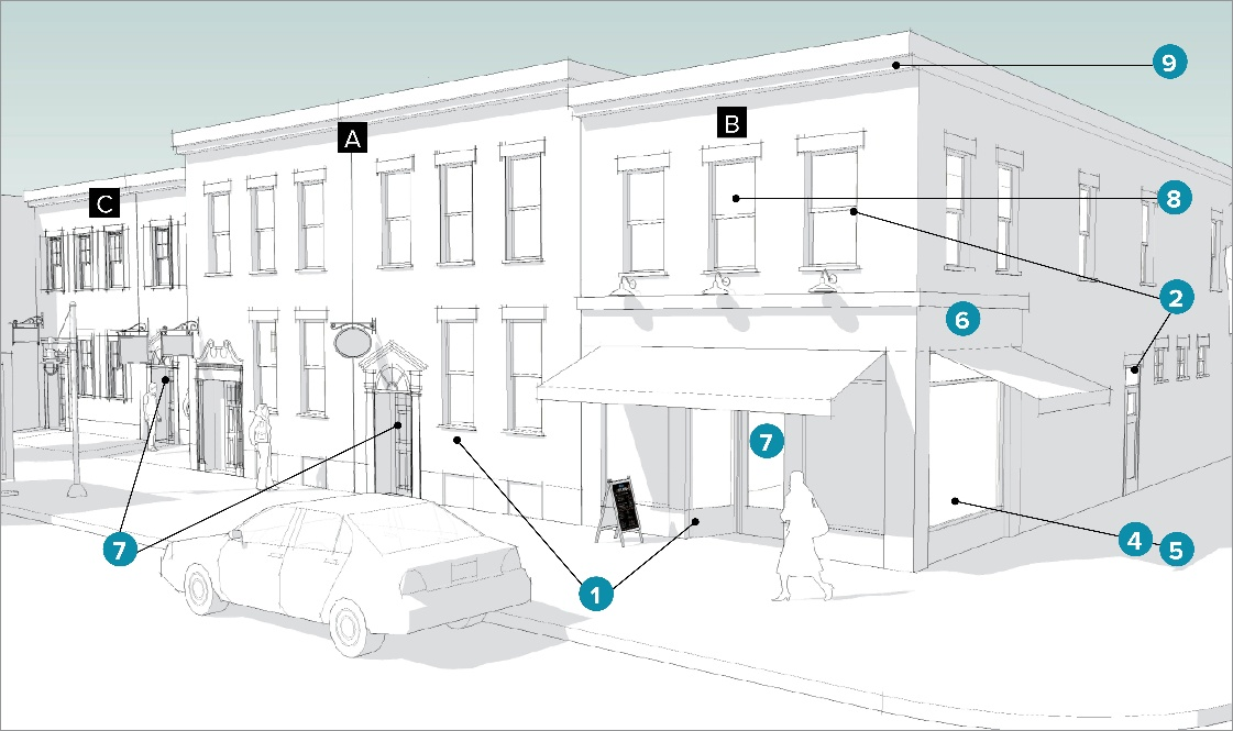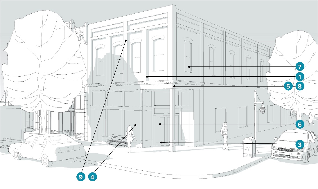 Mixed use buildings in the downtown district are required to conform to the following design guidelines: