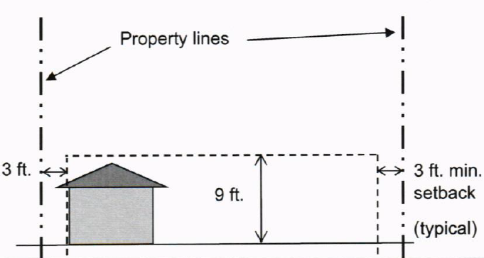 Buildings or structures, a maximum of two hundred (200) square feet in area and equal to or less than eight (8) feet in height, may be located in the required side or rear yard setbacks, subject to applicable building codes. Development plan review is not required.