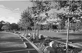 ◦ Interior parking islands may substitute the large canopy tree for a cluster of three small ornamental trees not to exceed 25 percent of the number of large canopy trees required within the planting islands.