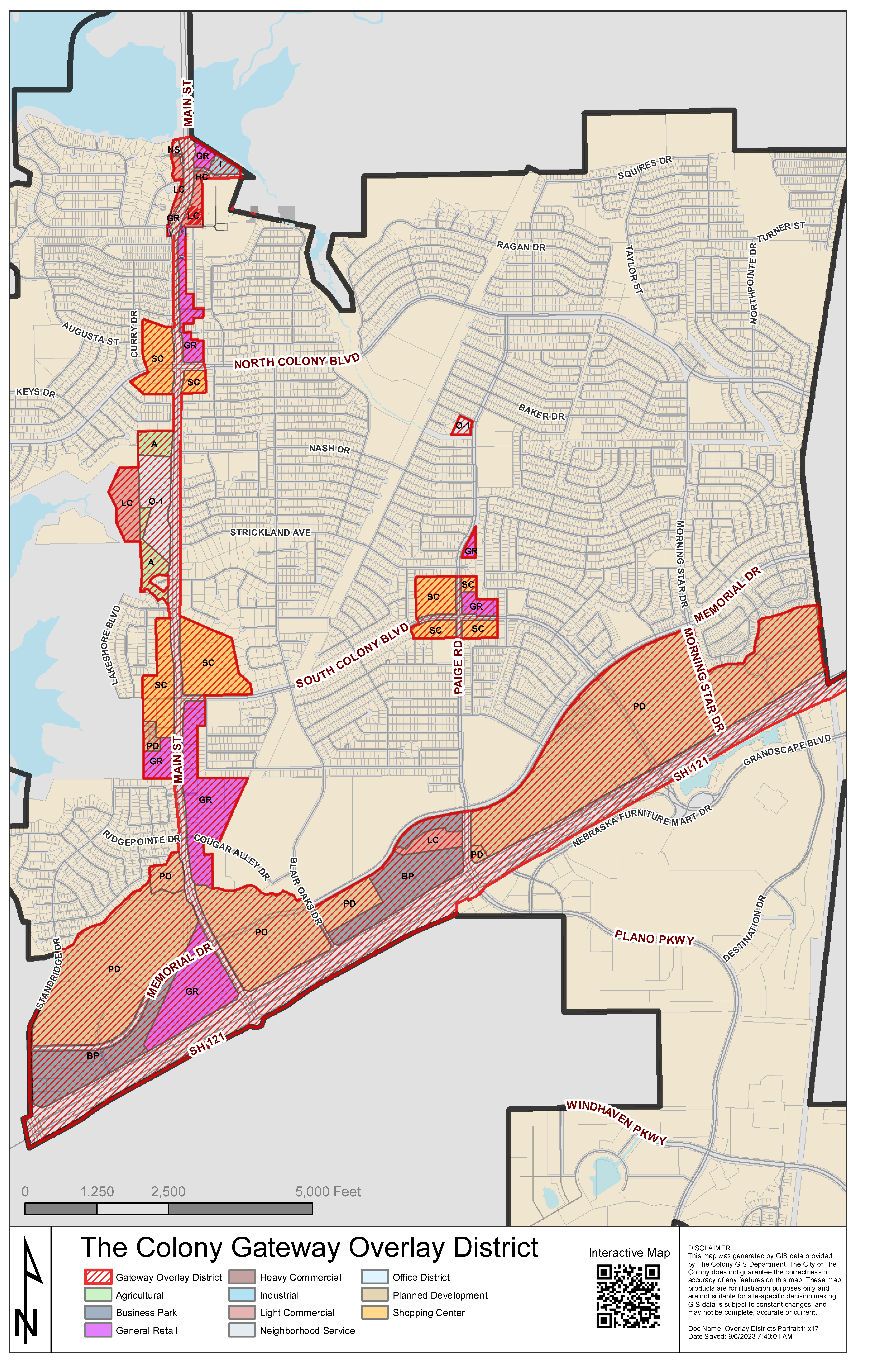 The Gateway Overlay District is defined as the area along the north side of S.H. 121 from the western city limit to the eastern city limit and along Main Street (F.M. 423) from S.H. 121 north to approximately 650 feet south of the Main Street (F.M. 423) bridge over Lake Lewisville (less and except those parcels between East Lake Highlands and Witt Drive beginning approximately 250 feet north of Witt Drive and located west and adjacent to Elm Street, and all those located east and adjacent to Elm Street), and retail/commercial/office areas at South Colony Boulevard and Paige Road and the southwest corner of Kisor Drive and Paige Road (see map on next page). Residential areas have been removed from the Gateway Overlay District. When and if any of the abutting residential district changes to a commercial zoning, the tract will automatically be incorporated into the Gateway Overlay District upon approval of the rezone request.