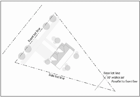 "Access corridor". The portion of a flag lot providing access from the street, except that no portion of a site having side lot lines radial to the center or curvature of a street from the street property line to the rear lot line shall be deemed an access corridor. The area of an access corridor shall not be included in determining the area of a site, and the depth of an access corridor shall not be included in determining the depth of a front setback.
