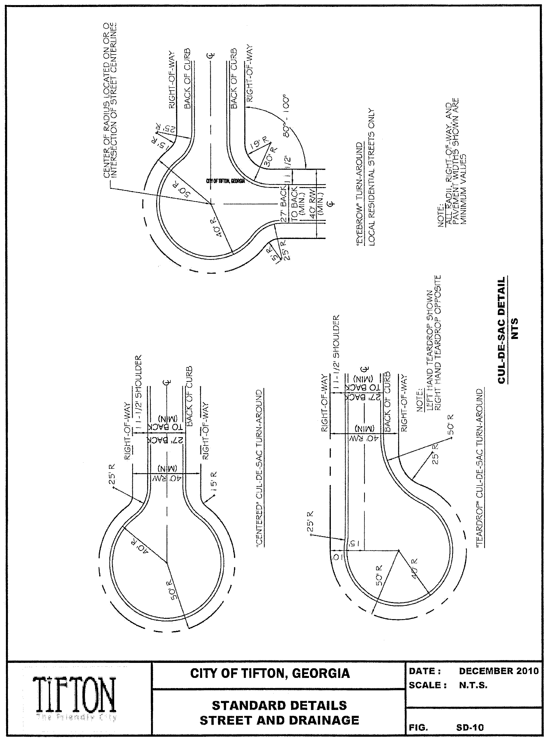 Dead-end Streets: A street having only one end open for access to another street, and the other end being abruptly terminated with no turnaround (excludes cul-de-sacs). Future development of dead-end streets is not permitted within City of Tifton.