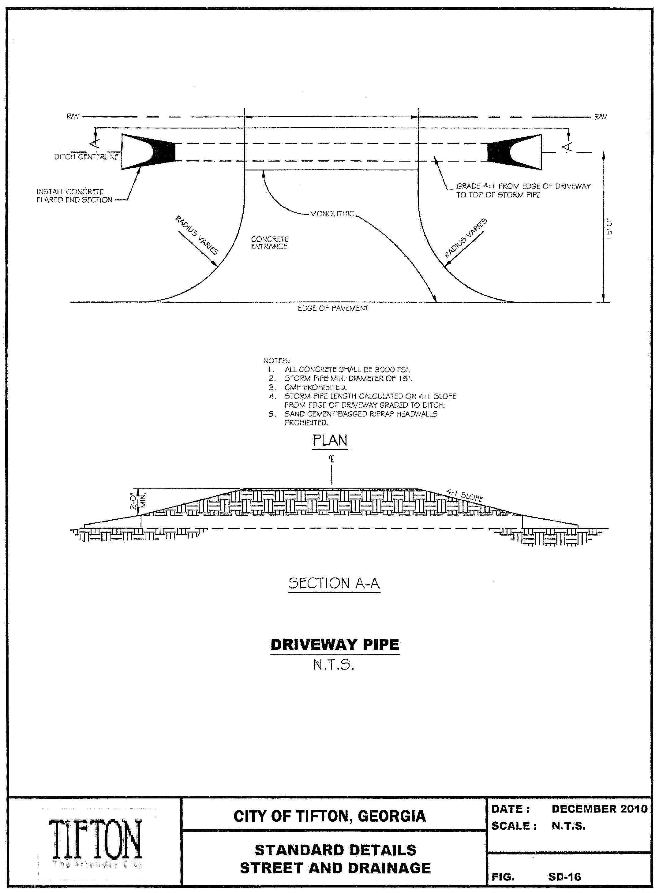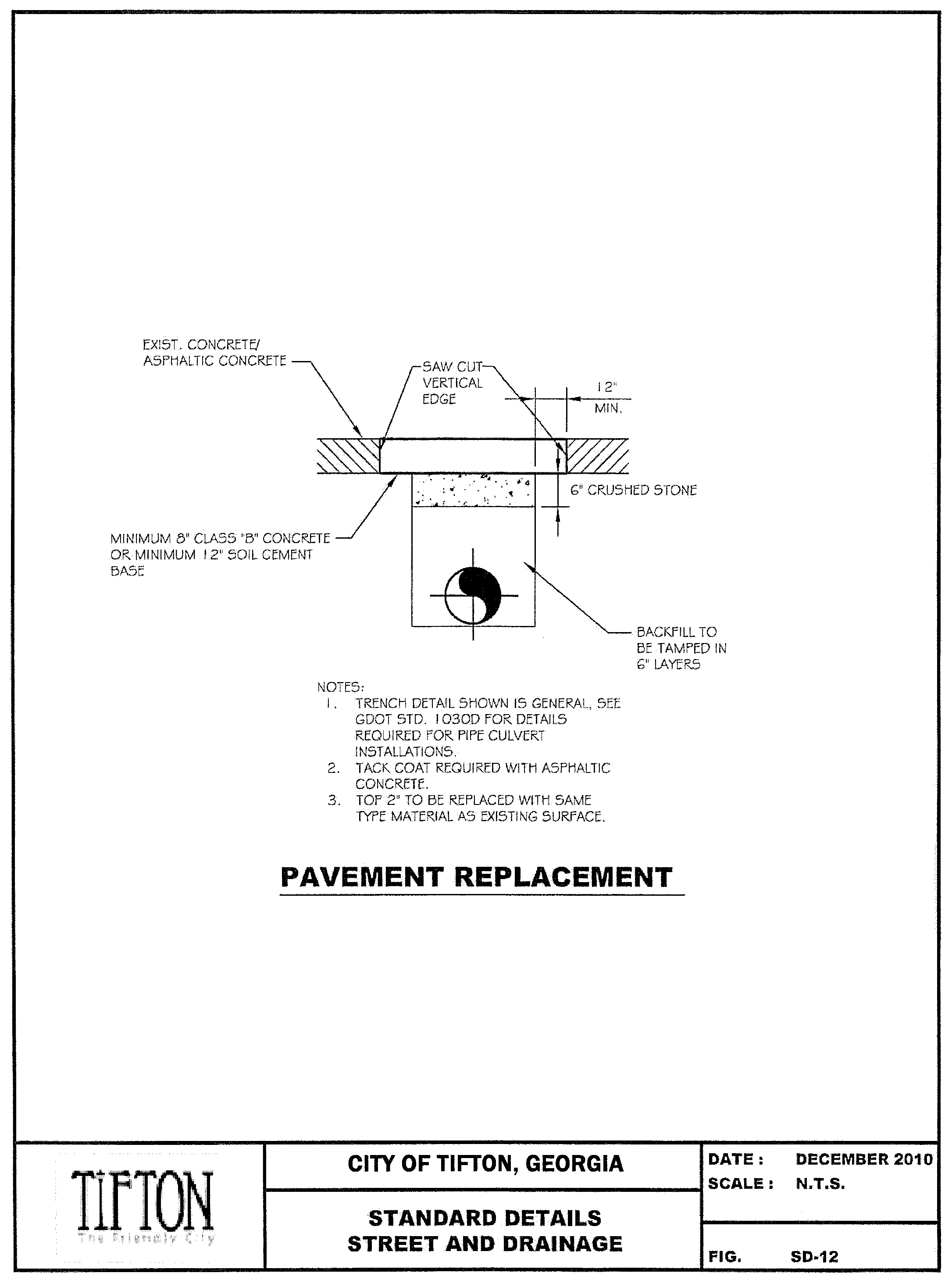 "I, (Name of Professional), a Registered (Professional Engineer / Land Surveyor/other qualified design professional) in the State of Georgia, hereby certify that the grading and drainage plans for the project known as (Project Name), lying in Land Lot (_____), of the (_____) District, located at (address), City of Tifton, Georgia, and identified on tax map (_______) as parcel (_____), have been prepared under my supervision, and, state that in my opinion, the construction of said project will not produce storm drainage conditions that will cause damage or adversely affect the surrounding properties. This (Day) day of (Month), (Year)."