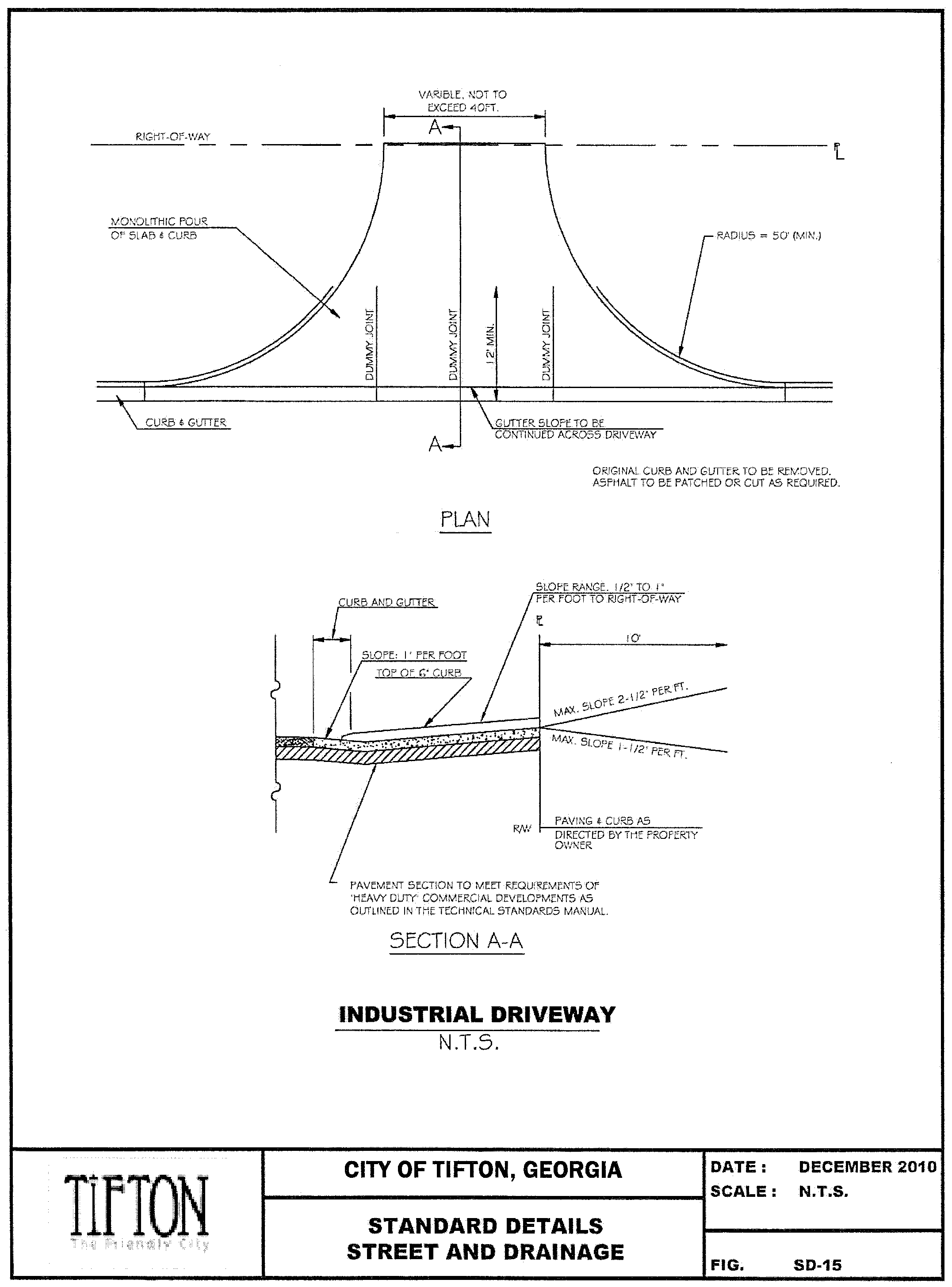 For typical roadway cross sections with asphalt pavements or concrete pavements, see the attached typical details.