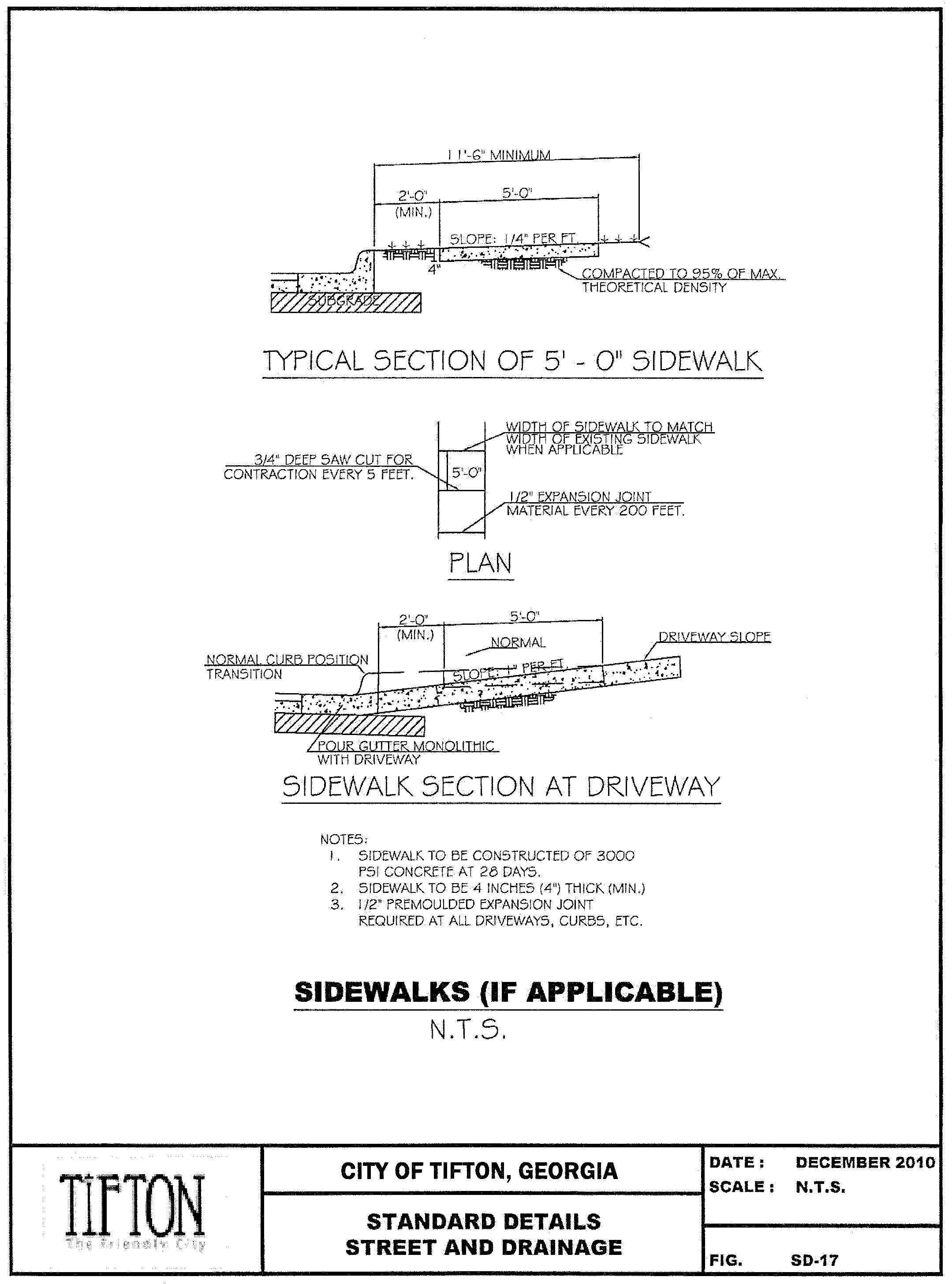 Base shall be compacted to 98% maximum dry density per standard proctor test ASTM D698.