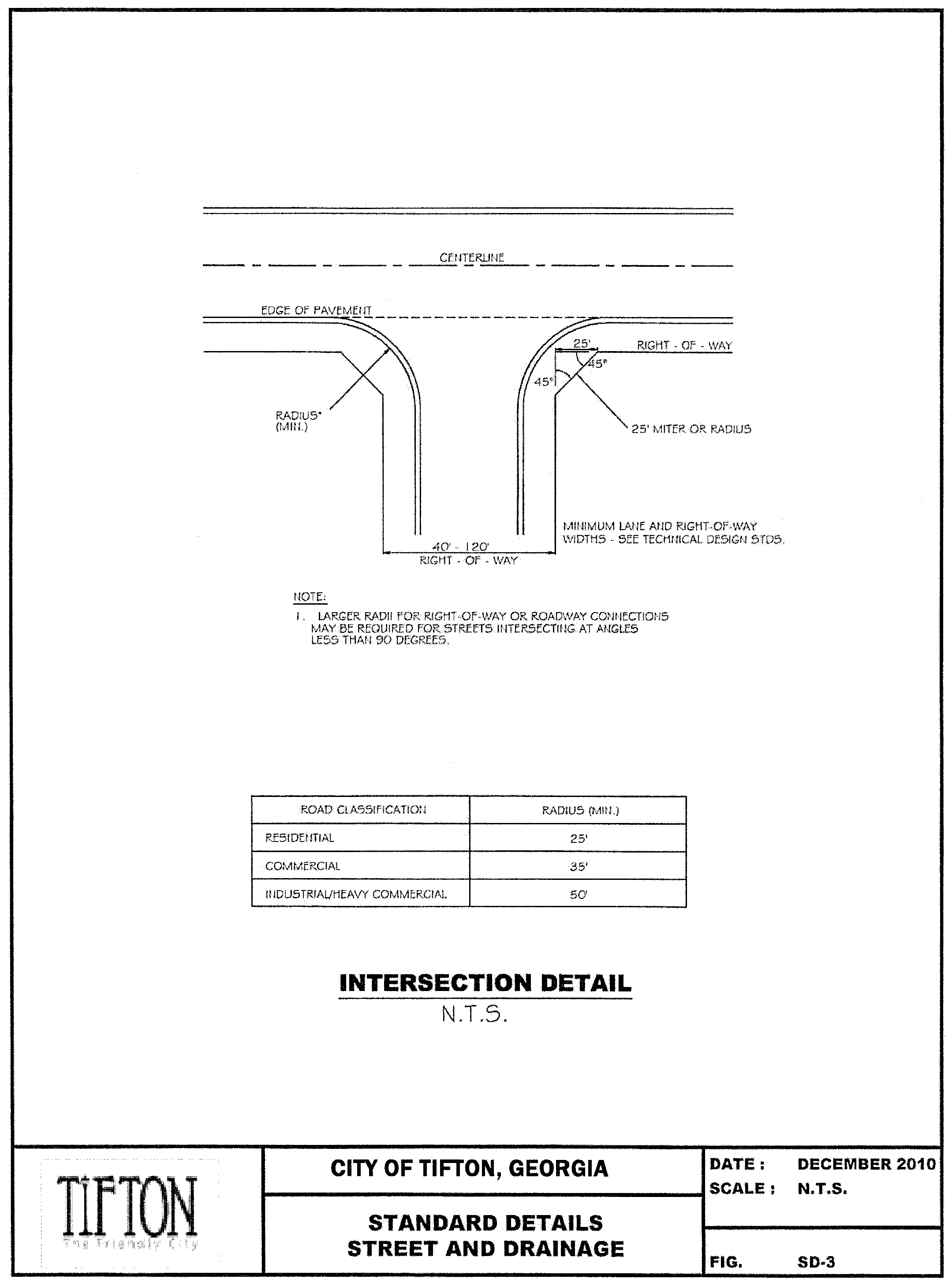 Six (6) functional classifications are identified by the City of Tifton Subdivision Ordinance and the Tifton-City of Tifton Thoroughfare Plan. Any street not indicated on the thoroughfare plan will be classified by the SDRC. The six classification categories are as follows: