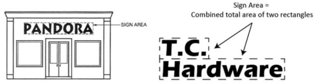 Where window signs are permitted, such sign shall not occupy more than 50% of the window area to which it is attached. See Figure 154.11-A for locations used in the calculation of sign area.