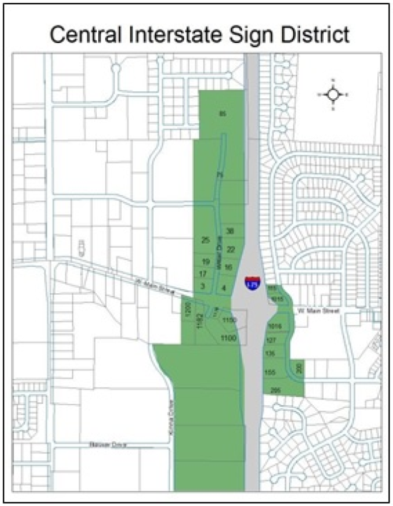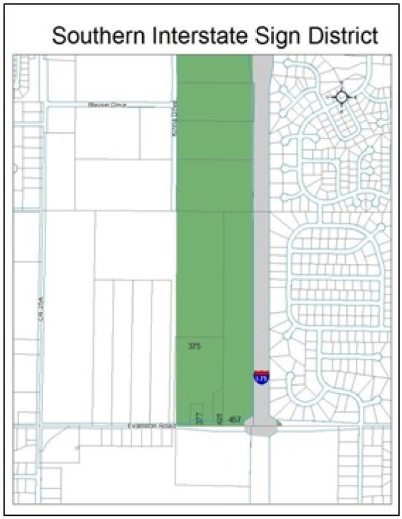For lots that have a minimum street frontage of 500 feet along a major arterial or Interstate 75, and where there is a minimum lot area of 20 acres, the maximum sign area shall be 64 square feet with a maximum height of 10 feet.