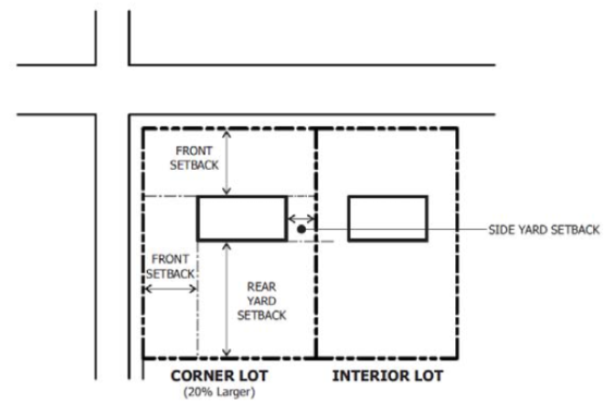The minimum lot area of a corner lot shall be 20% larger than the minimum area required for an interior lot.