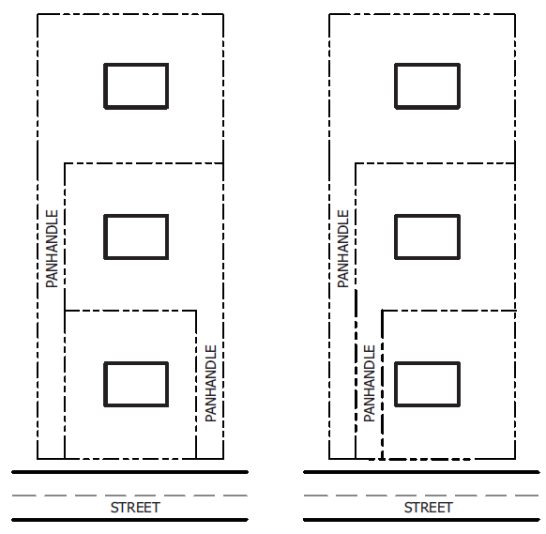 Figure 154.04-G: This illustration shows the stacking of panhandle lots, which is
