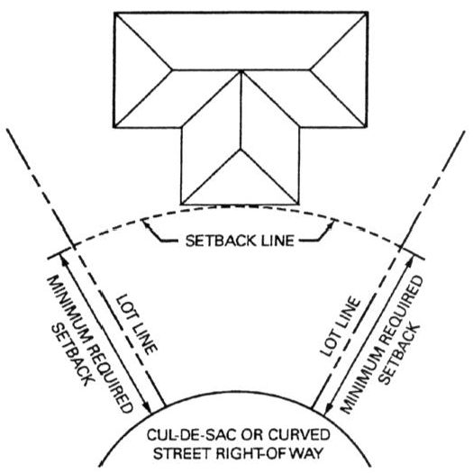 Figure 154.04-I: Setback line of a lot with frontage on a curved street or cul-de-sac.