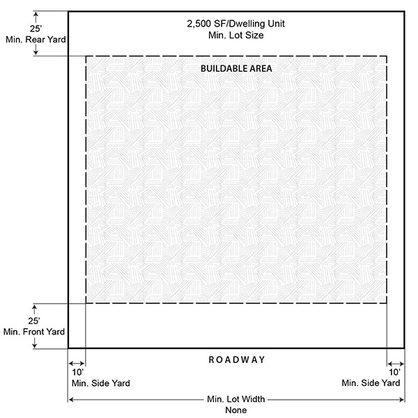 Townhomes: 2,500 Multifamily: 2,500 per dwelling unit Patio Homes: 4,000 |