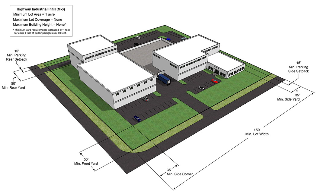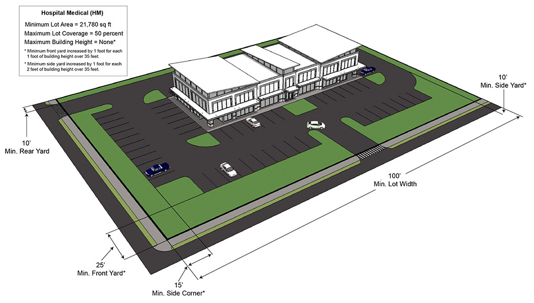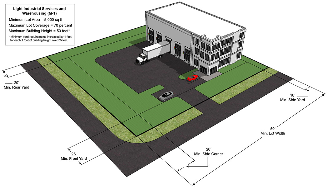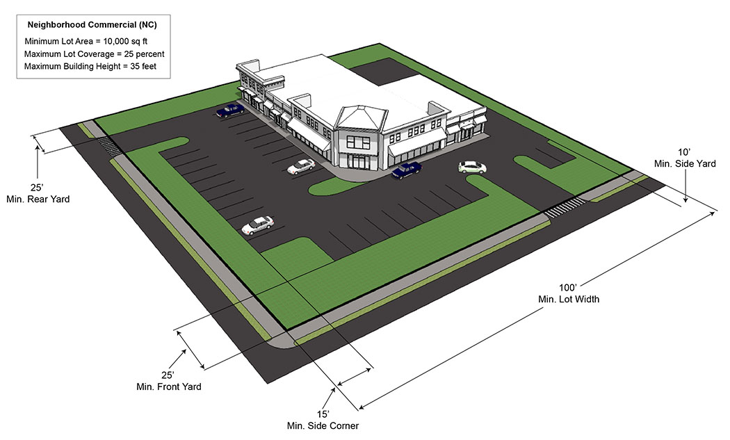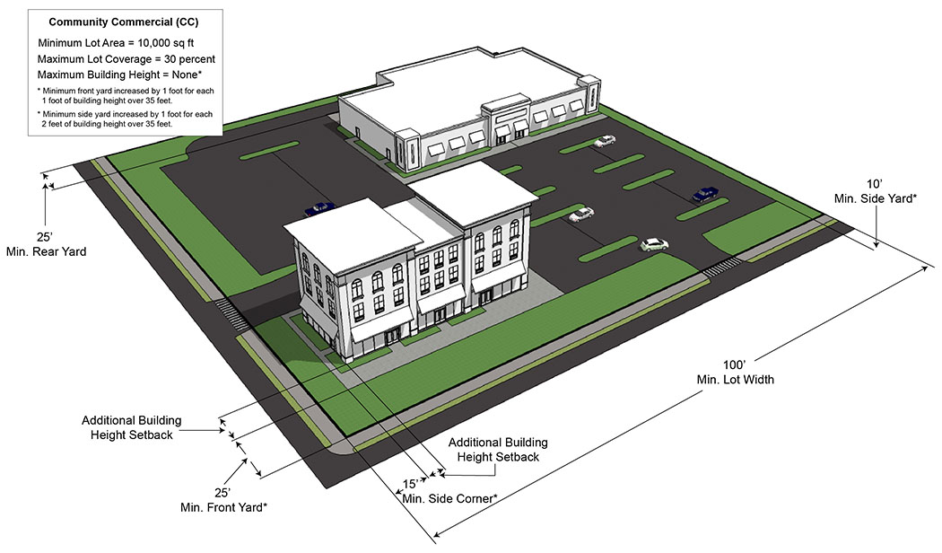 | Commercial: 50% lot coverage/3.0 Floor Area Ratio | None | ||